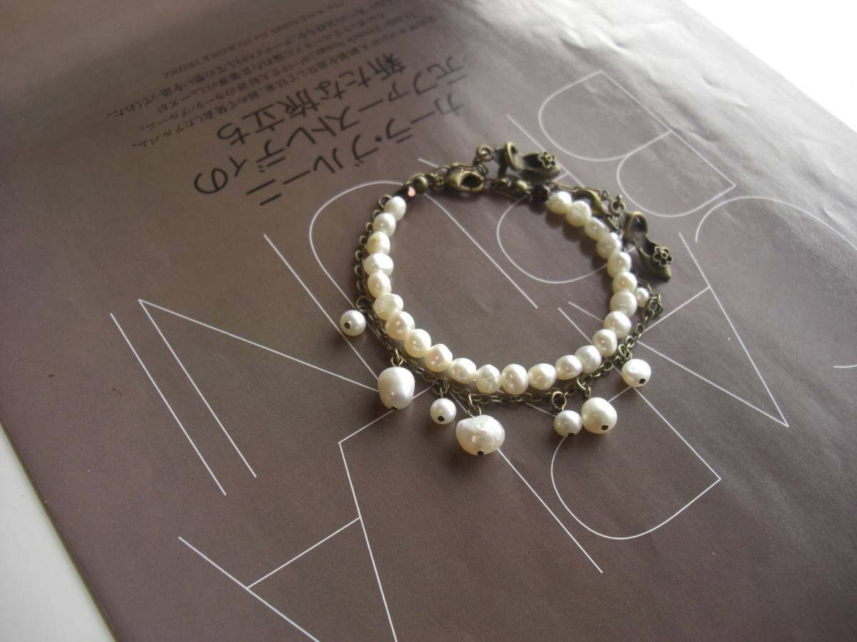 乙女の時間・・シリーズです♪バロックパールの魅力・・個性的なバロックパールのブレスレット2点セットです♪右のブレスレットは6ミリ位のホワイトパールを繋いでロマンチックな表情です♪長さは16センチ+アジャスター6センチで最長22センチ位です。真ん中は4ミリから8ミリ位までのバロックパールをランダムに紡いでいます♪長さは16センチ+アジャスター6センチで最長22センチ位です♪お揃いの ネックレスも出品しています♪シンプルで長く着けていただけるデザインに仕立てました♪ハンドメイドをご理解頂いてノークレーム、ノーリターンでお願い します