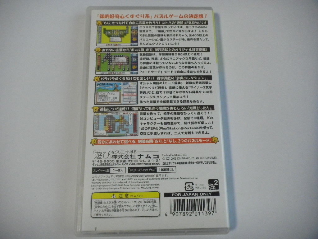 PSPソフト『ことばのパズル もじぴったん 大辞典 PSP the Best』中古品、起動確認済み