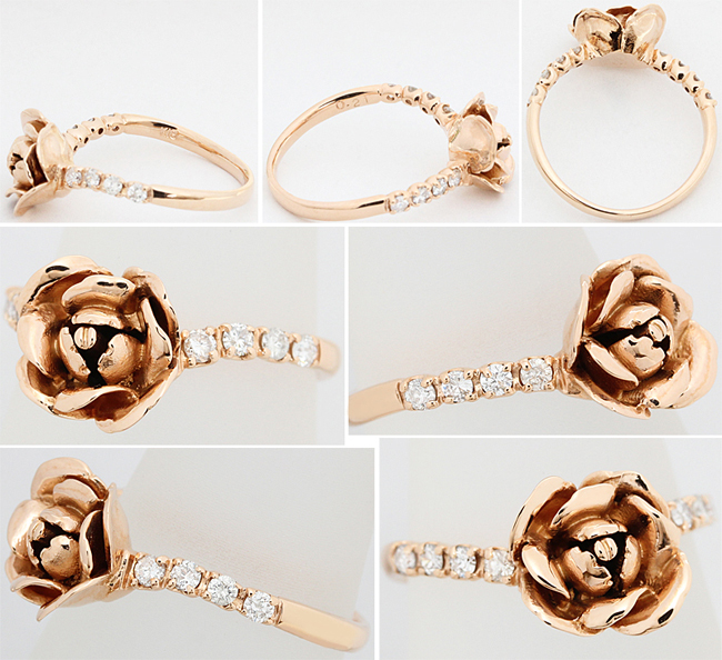 ●バラの花をモチーフにしたリングです♪ ●K18PG(ピンクゴールド)でかたどられたバラの花は、エレガントで美しい仕上がり♪ ピンクゴールドの優しい色合いが、バラに良く合いファッショナブルです♪ ●両脇には、8石・合計0.21カラットのダイヤをセット♪ キラキラとしたキメ細やかな輝きが、素敵なアクセントになっております♪ ●リングのショルダー部分は、ゆるやかにV字のウェーヴを描いたデザインとなっており、スマートかつ洗練された魅力をたたえております♪ ●リング枠は高品位のK18PG(ピンクゴールド)製となり、確かな品質でございます♪ ●リング内側には、素材とカラットを表す「K18 0.21」の刻印がございます♪ ●「ケース・送料」込みのお値段となります♪ 消費税は発生いたしません♪ ●宝石鑑別書(ジャパン・ジェム・グレーディング・センター発行)の作成をご希望の場合には、2500円にて承ります♪ ●写真でジュエリーが黒く写っている部分は、カメラの写り込みです♪ 実物に汚れ・キズ等があるわけではございませんのでご安心ください♪ | |
