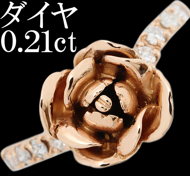 | 上品 綺麗☆ダイヤ 0.21ct K18PG リング 指輪 12号 バラ 薔薇 ローズ 花♪送料込 | ||