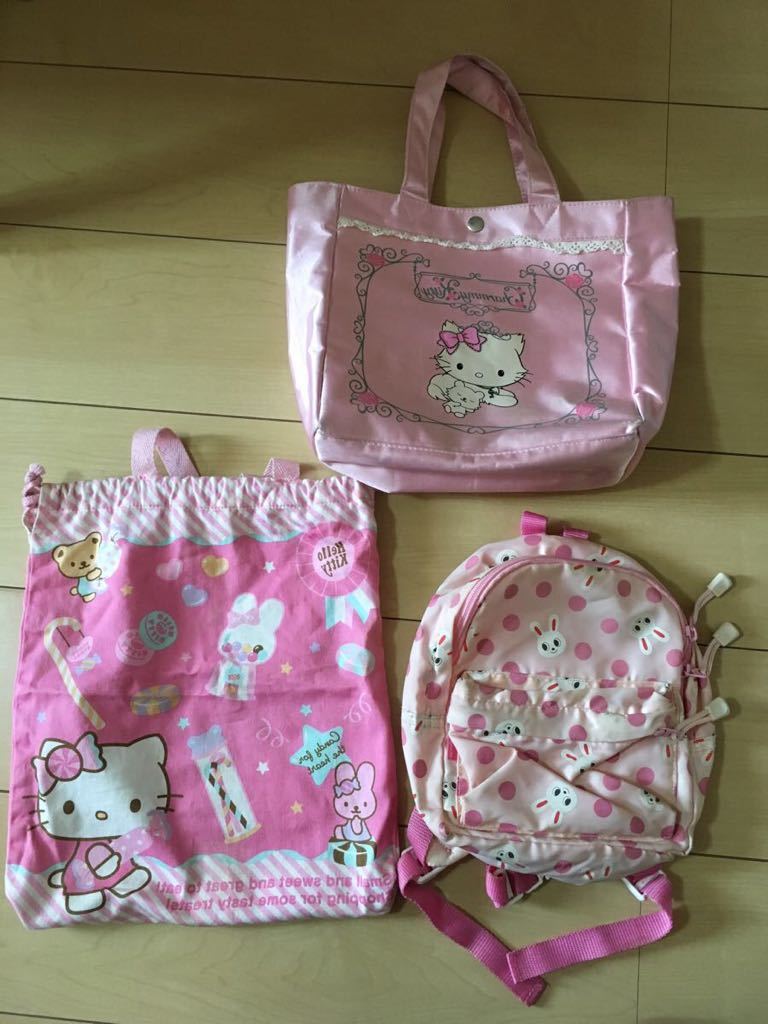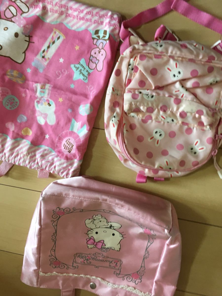 女の子 ハローキティのバック・巾着バック ミキハウスうさこちゃんのリュック纏め売り3点