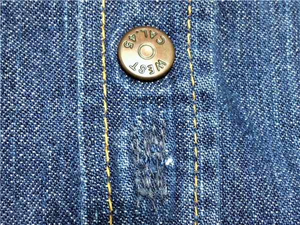 ビンテージ 耳付き デニムシャツ WEST CAL 45 ボタン 検索 50s 60s 70s ストライプ 国産 インディゴ セルビッチ
