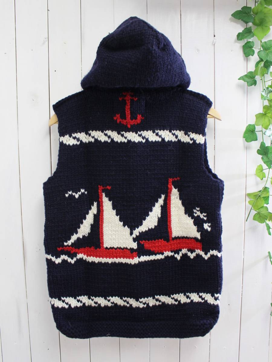 新品◆CANADIAN SWEATER カナディアンセーター◆カウチンセーター マリン ヨット柄 フード付き ニットベスト 40 定価48,000円*
