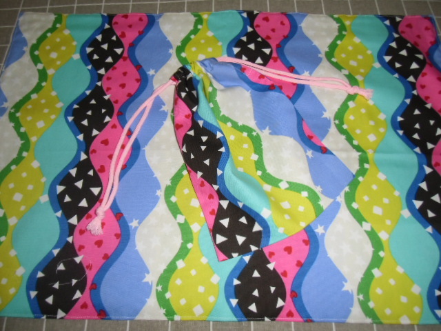 手作りの大判裏付ランチョンマット&巾着袋になります。