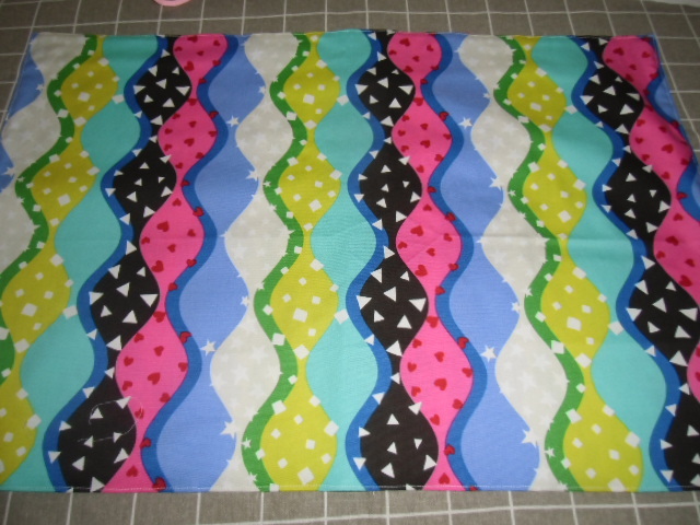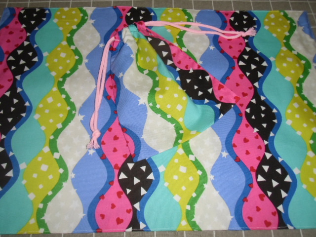 No.164  大判裏付ランチョンマット&巾着 ハンドメイド  40x60 カラフルウエーブ ピンク