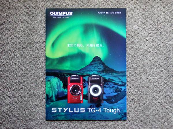 OLYMPUS オリンパス STYLUS TG-4 Tough、商品カタログです。※カタログのみの出品です。2015年4月版。全12ページ。販売店印あり。破れ、書き込み、切り抜きはありませんが、流通時についた小キズ、アタリキズ、擦れ、凹み、クセなどがある場合があります。また経年劣化のありうる商品であることをご了承ください。写真でご判断の上、ノークレーム、ノーリターンでお願いいたします。超美品をお求めの方、神経質な方は、入札をご遠慮ください。※誠に勝手ながら、「新規」の方、連絡が極端に取りづらい方、オークション終了後、取引ナビにて48時間(約2日)以内に連絡がとれない方などは、入札をご遠慮ください。落札者都合での取り消し/削除させていただく場合がございます。※土曜日、日曜日、祝日は、こちらからのご連絡および返信ができない場合がございます。ご了承ください。よろしくお願いいたします。