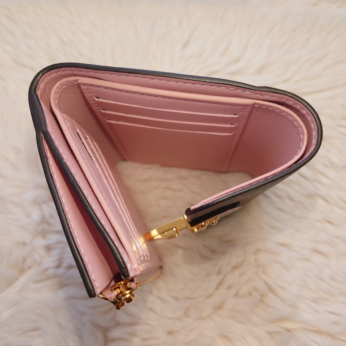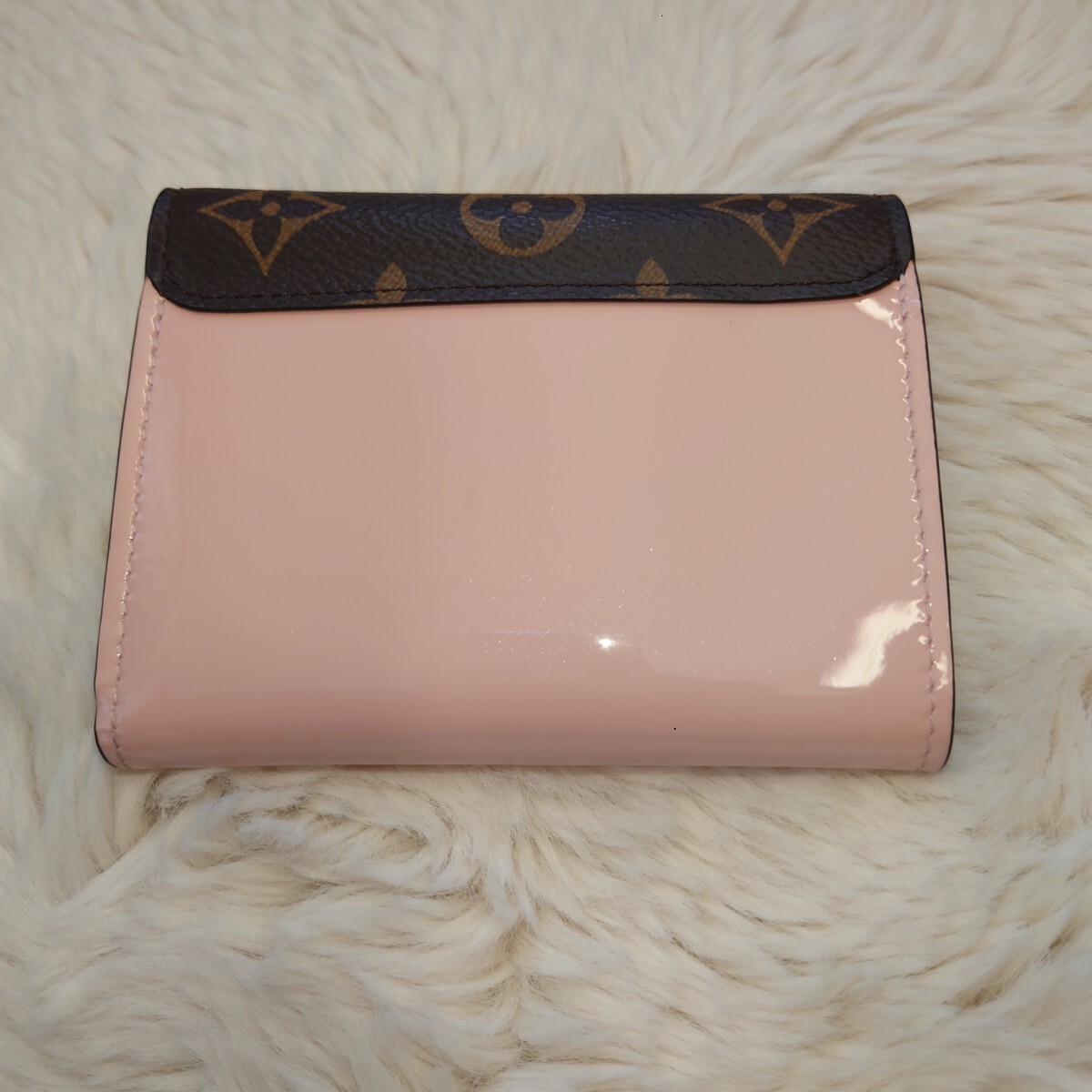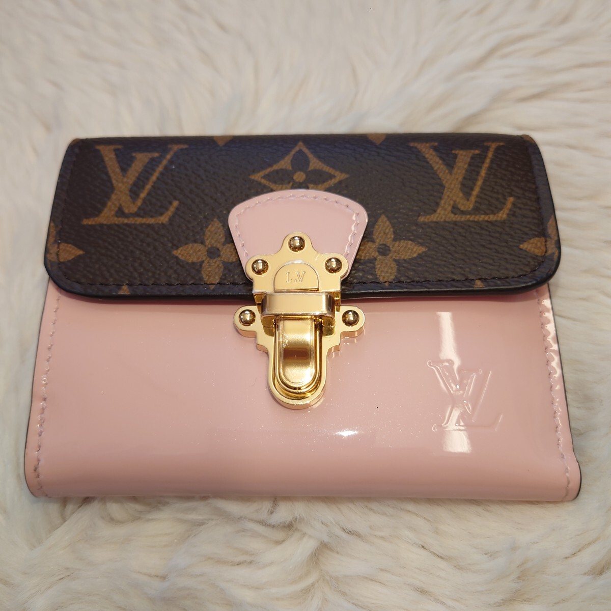 | ルイ・ヴィトンの伝統的なトランクのロックから着想を得た特徴的なデザインのクラスプが際立つ、アイコニックなモノグラム・キャンバスとなめらかなパテントカーフレザーを組み合わせた財布「ポルトフォイユ・チェリーウッド コンパクト」。コンパクトサイズでありながら複数のポケットとクレジットカード用スロットを備え、機能的で収納力に優れたスタイリッシュなデザインのアイテムです。 |