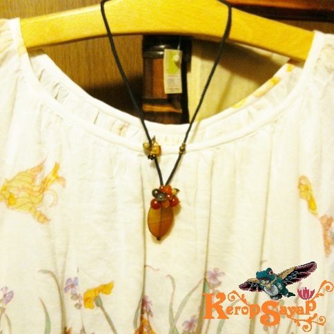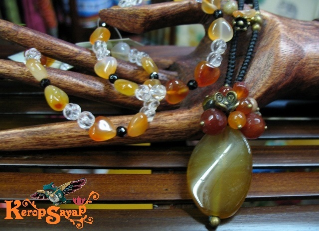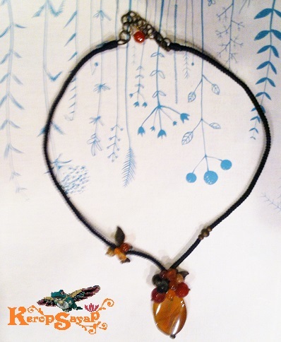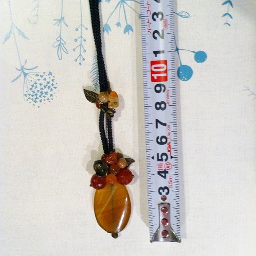大粒の石と蝋引きの紐を使用したネックレスで凝った作りが素敵な一点ものです。
