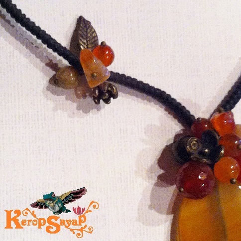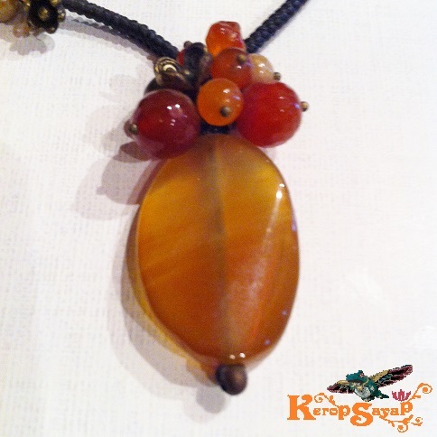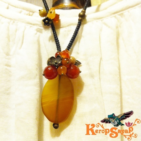 透明感が綺麗☆大粒メノウ瑪瑙アゲート×ワックスコード編みネックレスペンダント パワーストーンお守りハンドメイドタイ雑貨カーネリアン