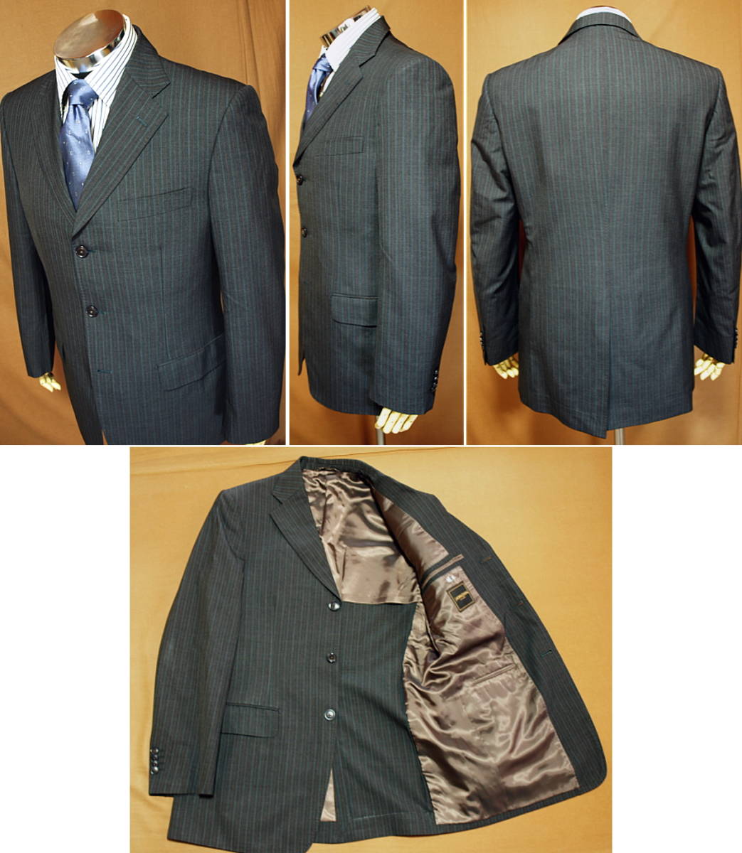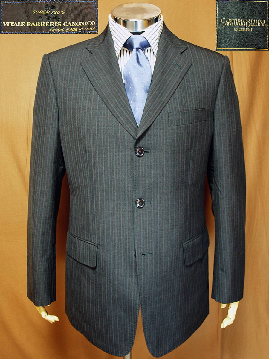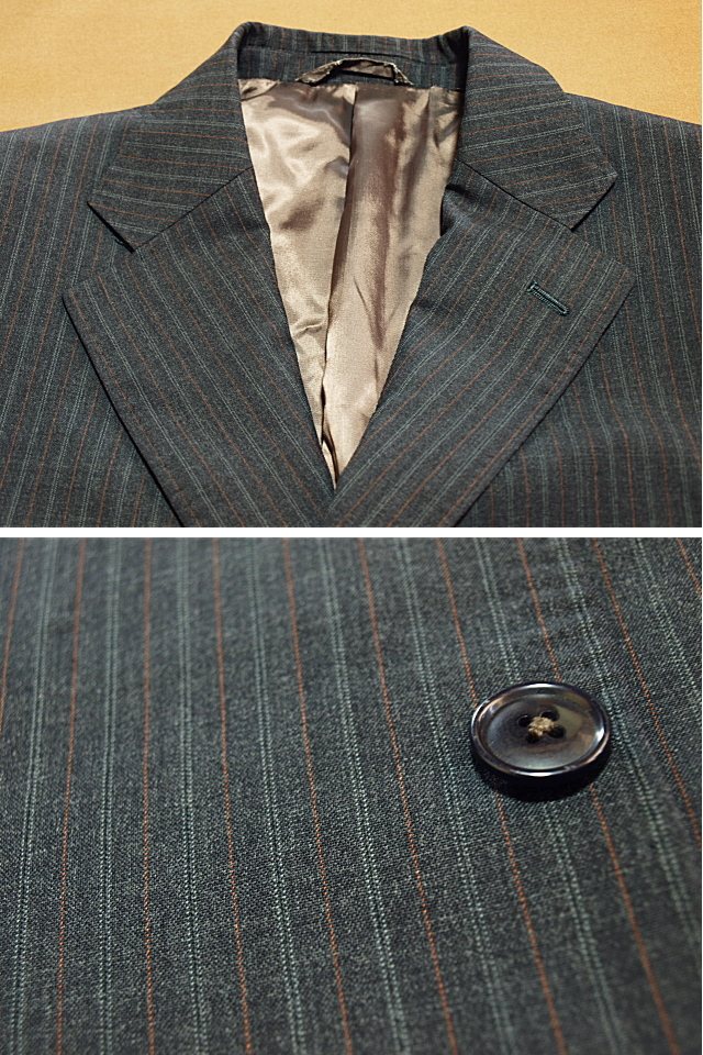濃グレ-xストライプ柄!!3ボタンス-ツ(A7サイズ)春夏物Super120’s伊生地