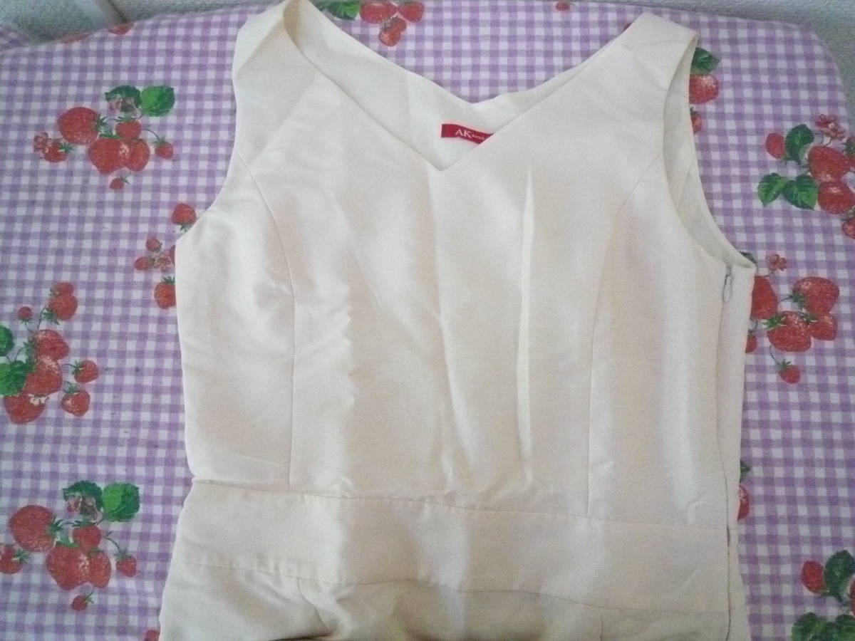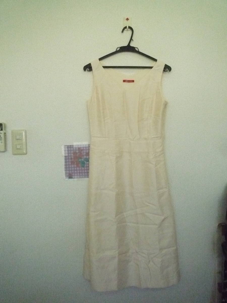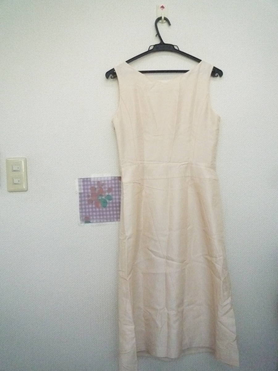★ ANNE KLEIN アンクライン Vネックノースリーブワンピース シルク風 光沢クリーム系 サイズ9号