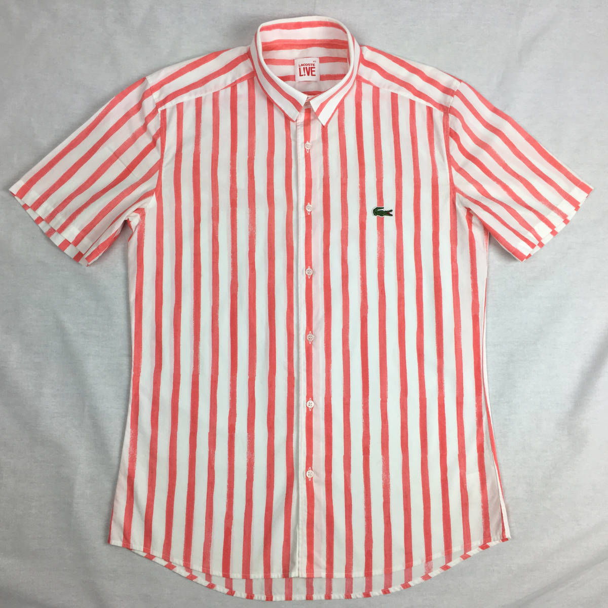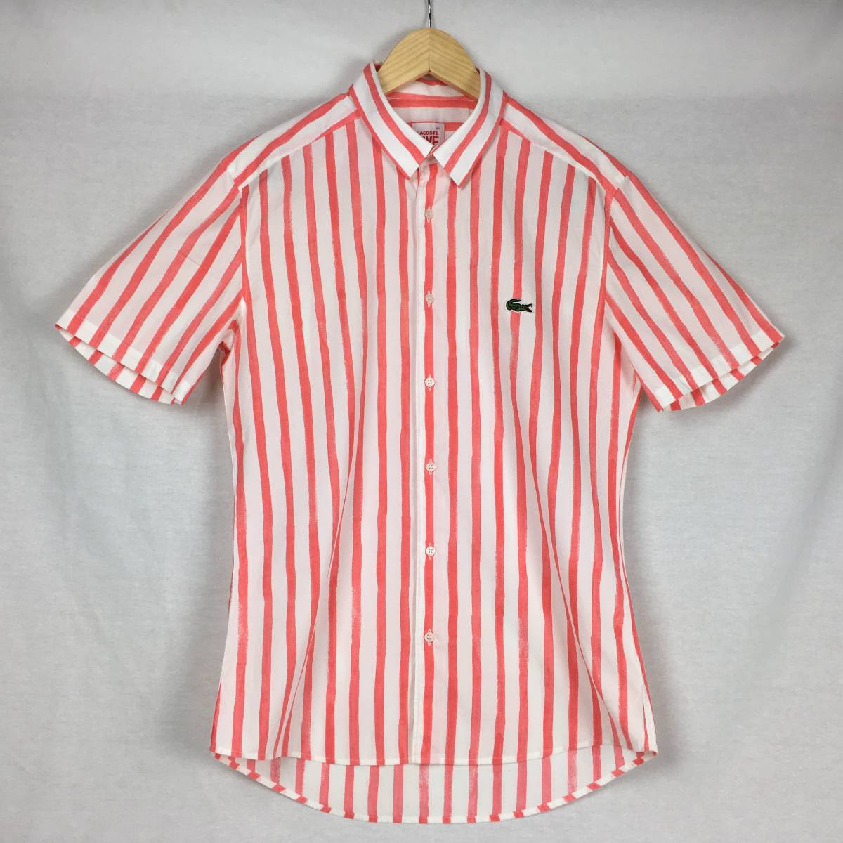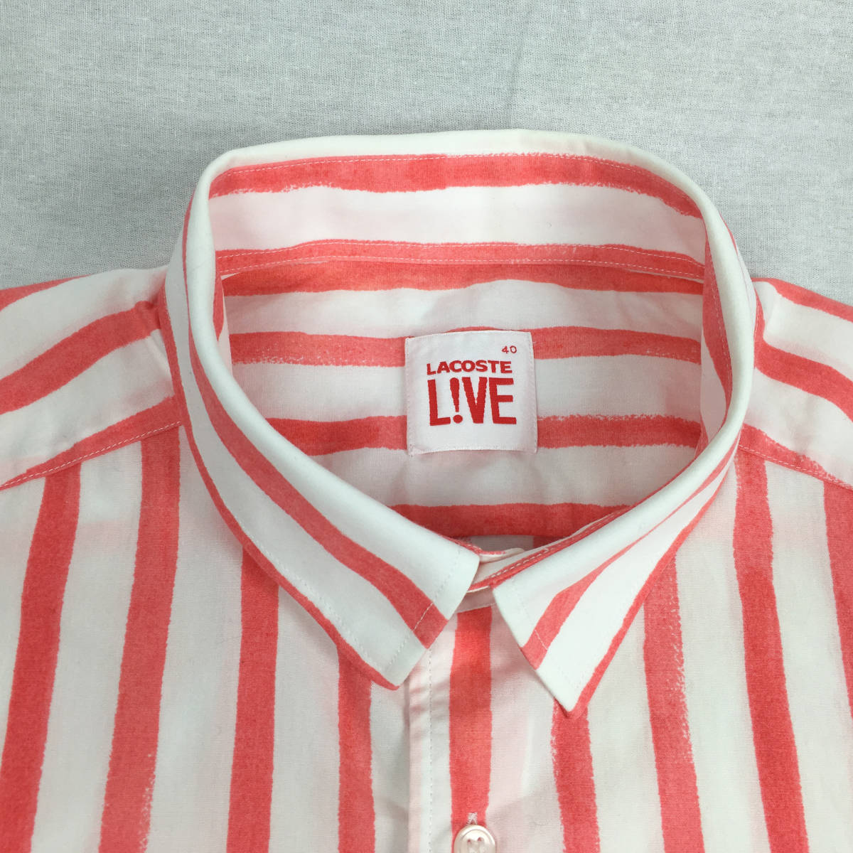 LACOSTE Live ラコステ ライブ 半袖シャツ ストライプ 白/赤 40