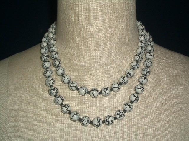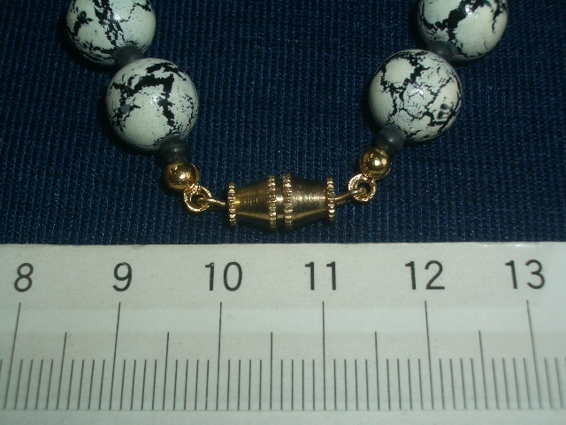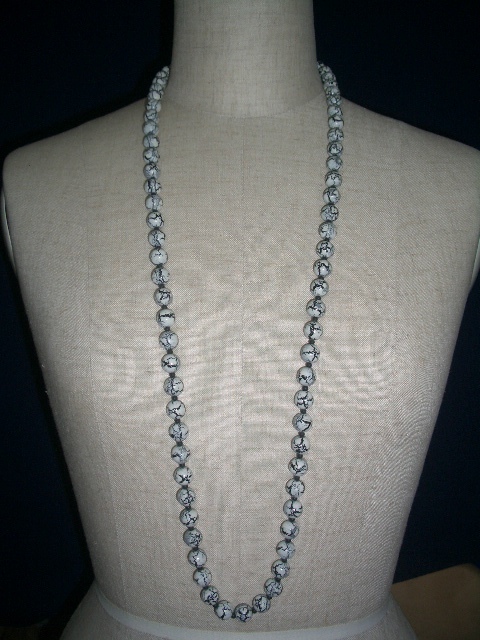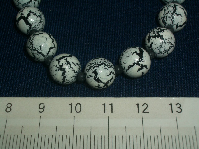 ・樹脂ビーズ:白(黒い柄入り)(丸型:約10ミリ)