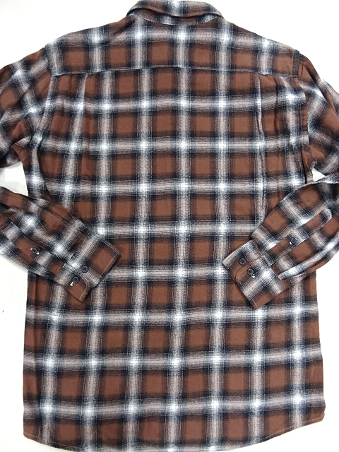 古着 90S シャドーチェック オンブレ ネルシャツ 配色 茶 白 黒 1 ポケット 渋 カラーリング ブラウン ホワイト ブラック 薄手 サイズ ?