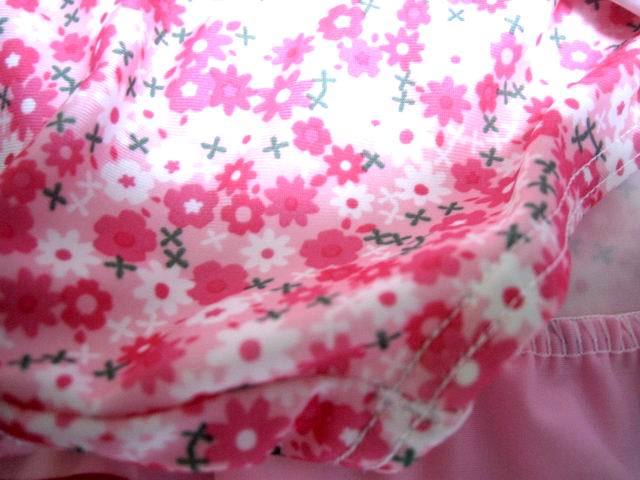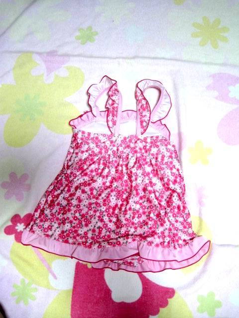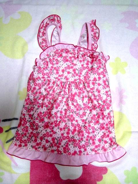 光沢ピンクの小花柄Aラインワンピース水着(95)