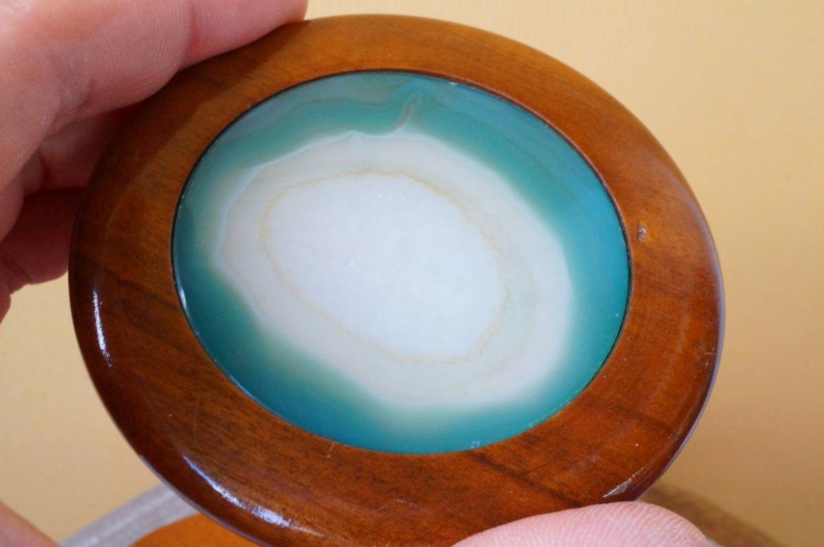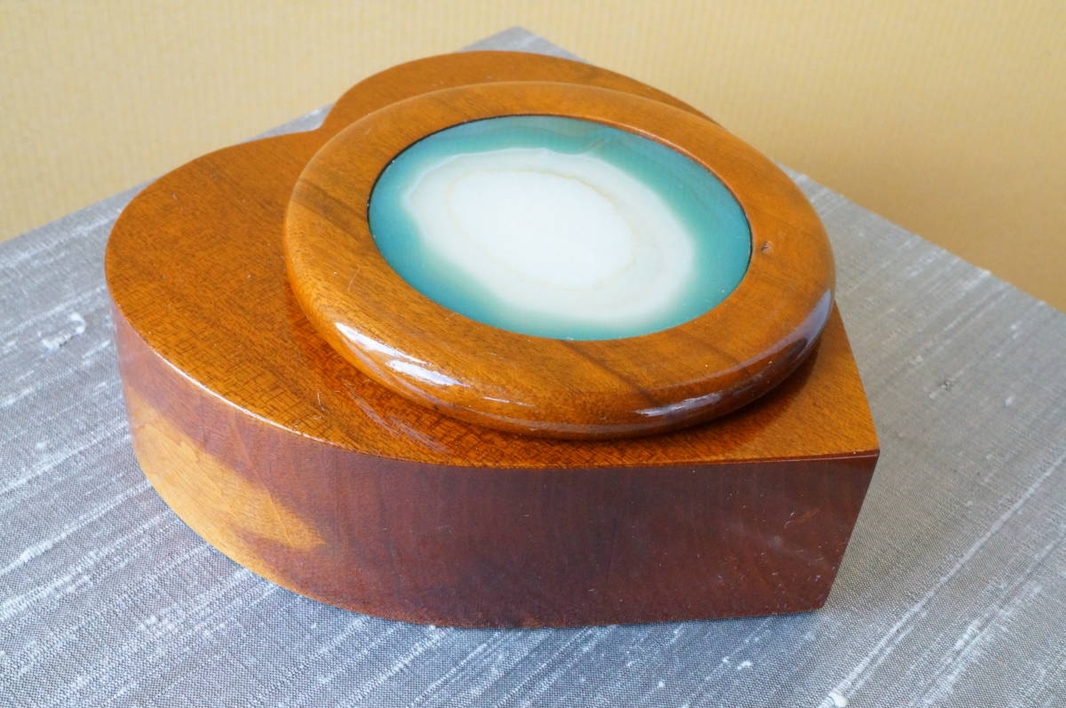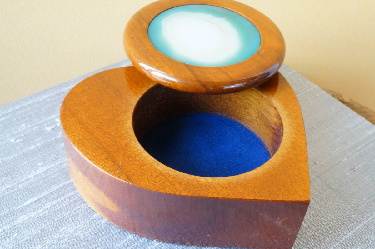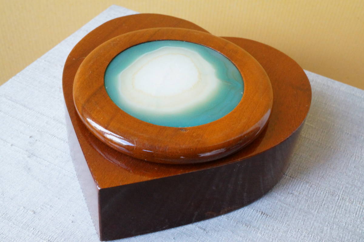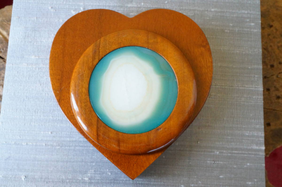 30年前のの希少在庫!上質ブラジル産瑪瑙・クリソメノウ・めのう・メノー原石板付木製ハート型小物入れ、宝石箱② | |||||||||||