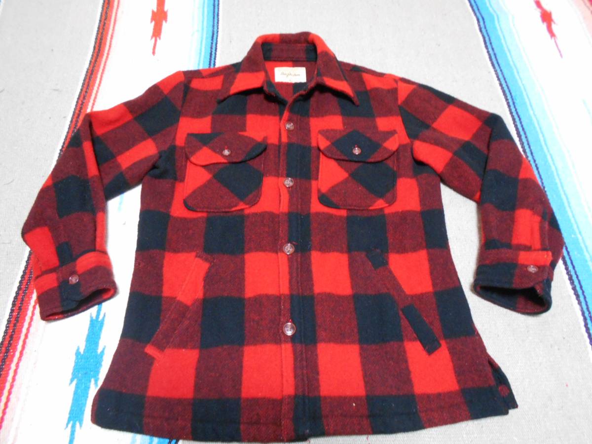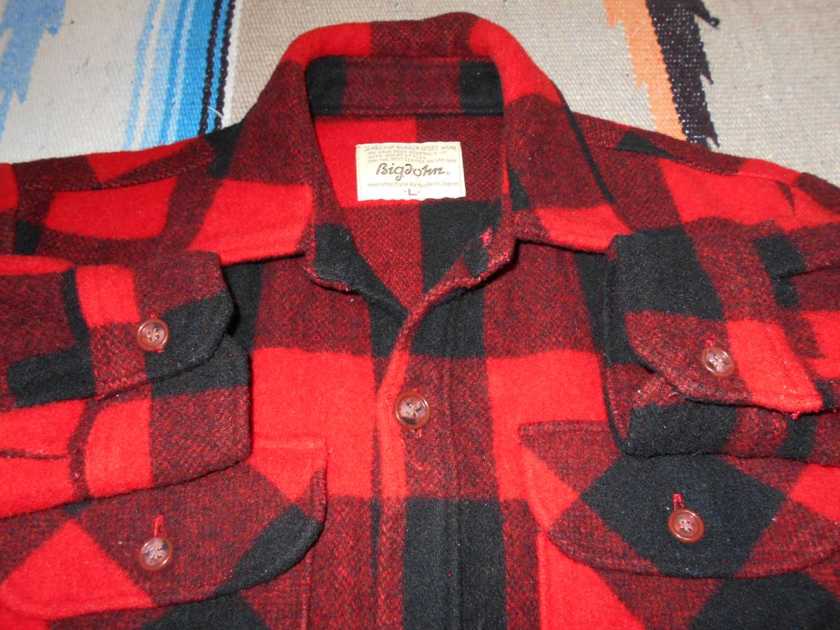 1960S BIGJOHN オリジナルの良質厚手 ウール90% × ナイロン10% 起毛素材感、風合いある発色のブロックチェック柄、フラップ付きチェストポケット、クラシックな大型襟のカットデザイン、動きやすさを確保するサイドベントは三角ガゼット補強   等等...ビンテージ オリジナルのディテールが極めて良い感じ