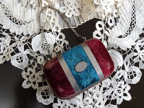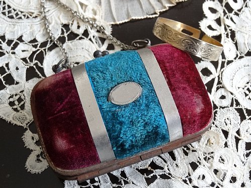 Grace/アンティーク/フランス製1900年頃/ ドール用の カーペット バッグ/人形用の腕輪 (バングル) 付き ドールのお持たせに。定形外送料0円