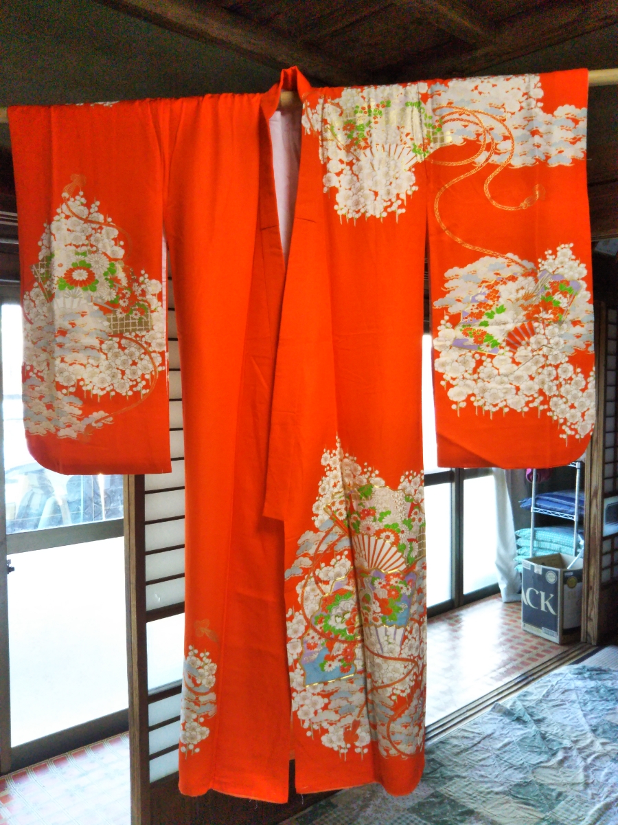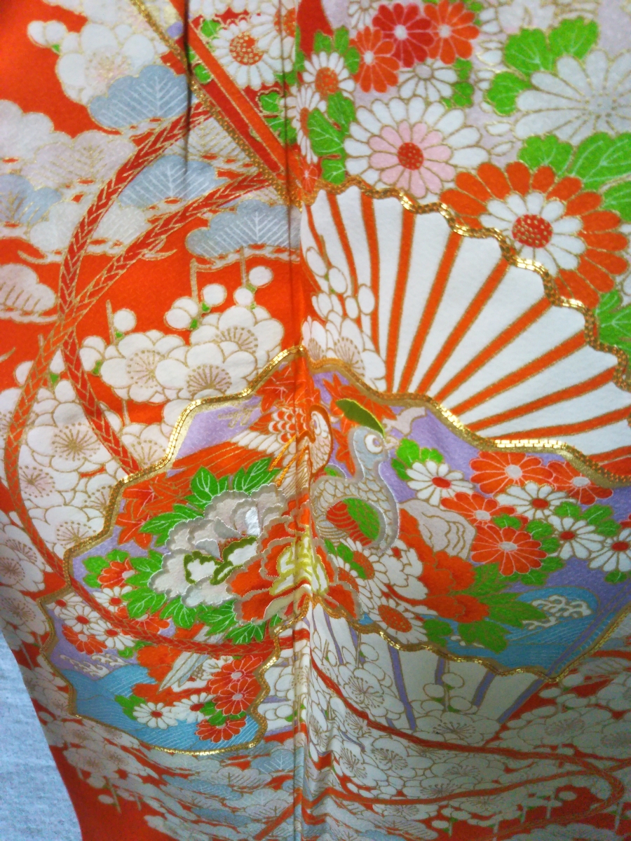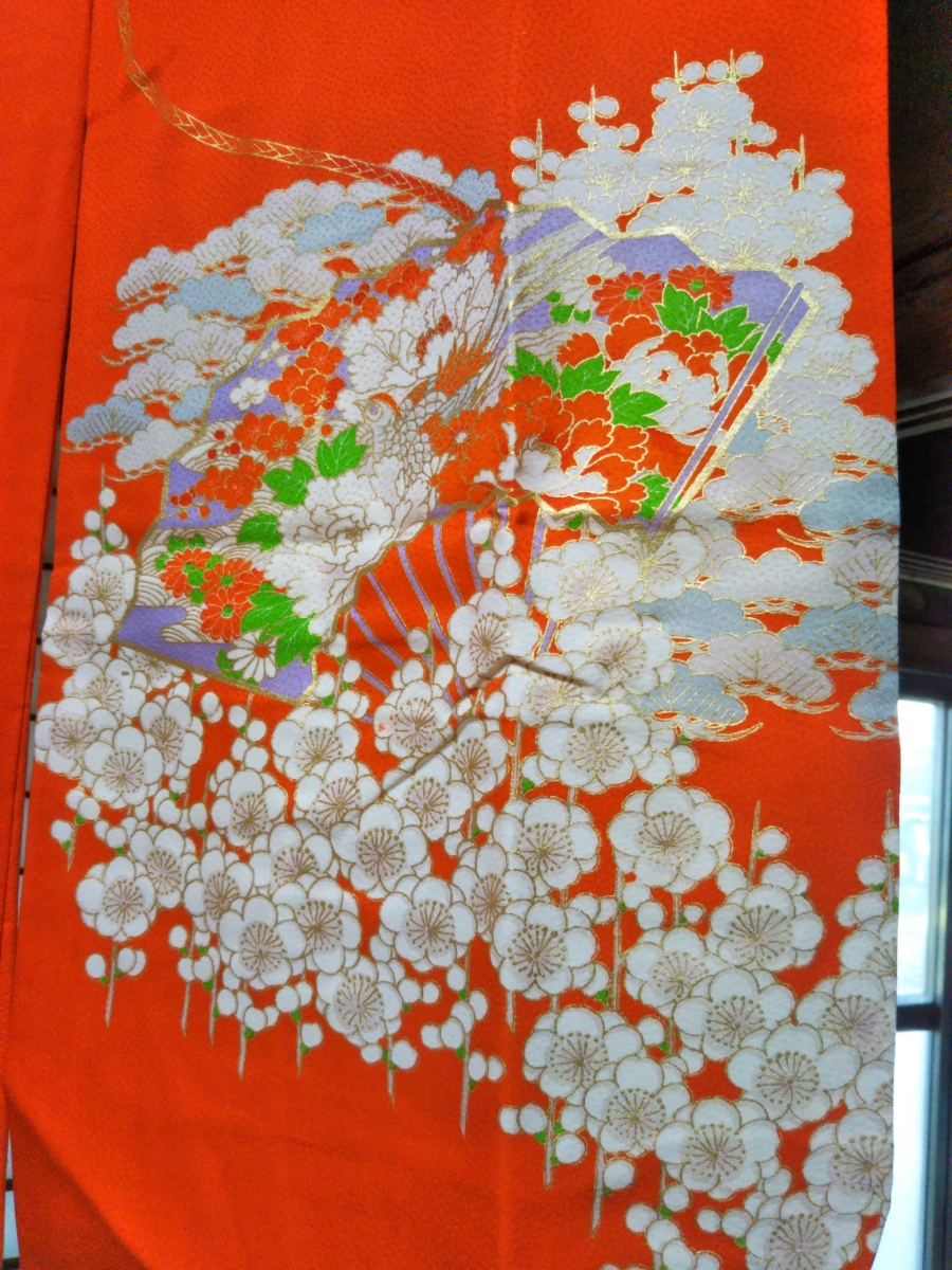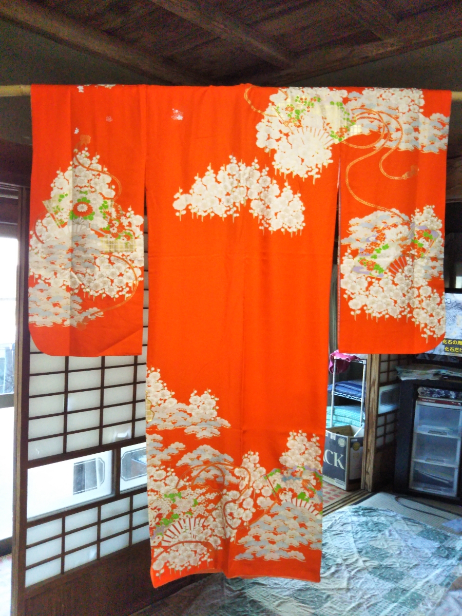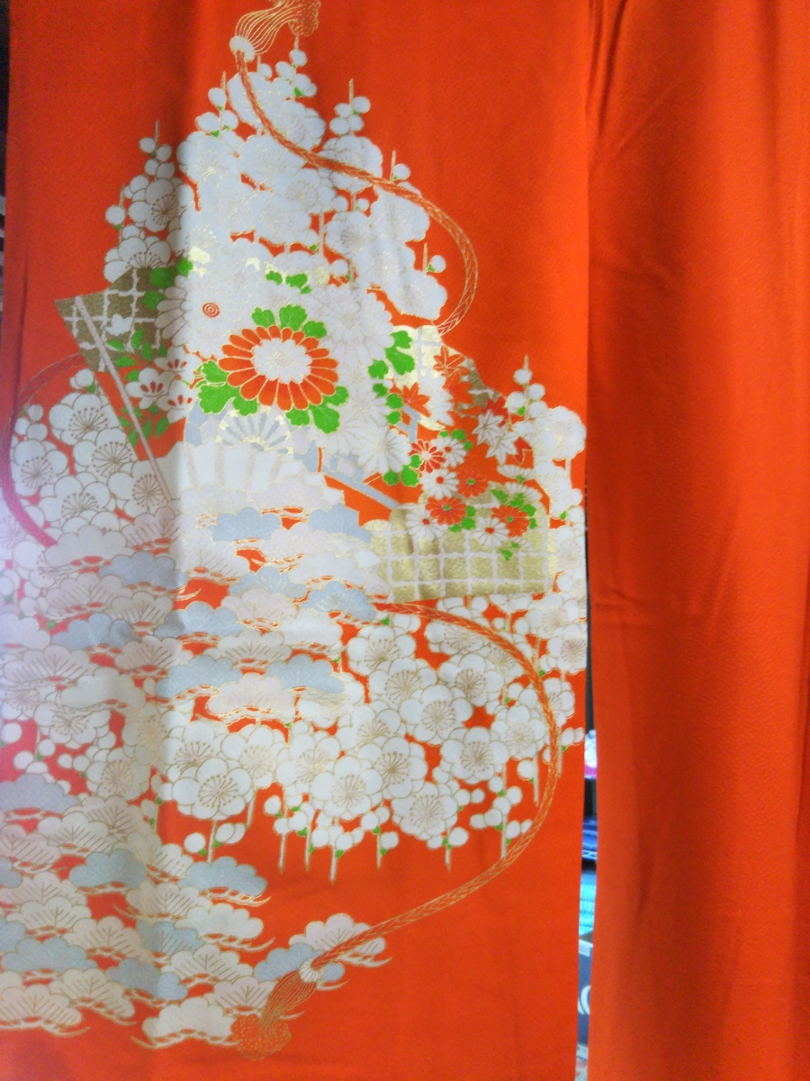正絹小振り袖 オレンジ系 総裏付きオレンジ