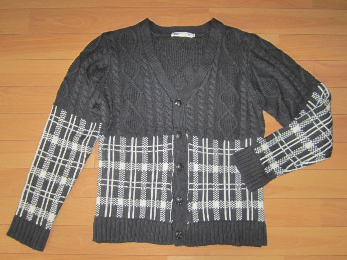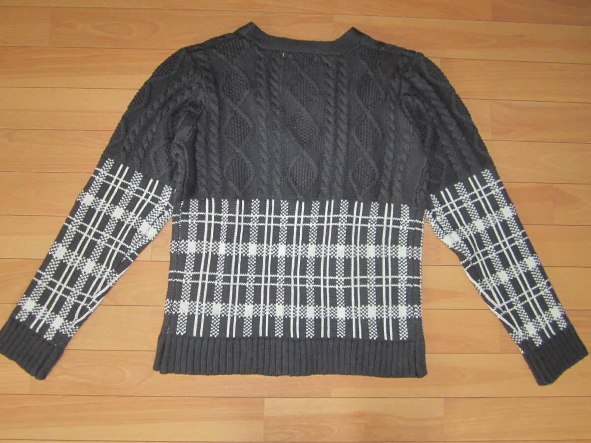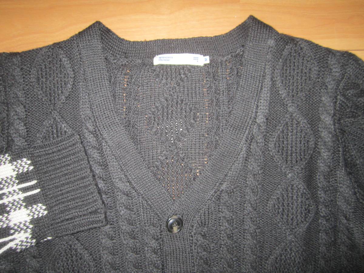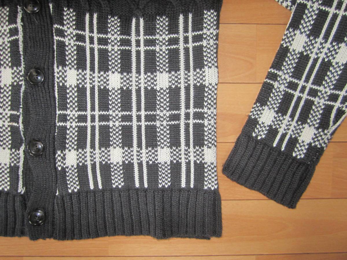 【即決!】★SEVENDAYS=SUNDAYS no.32154D70010 ケーブル&チェックカーディガン★濃灰白sizeM★