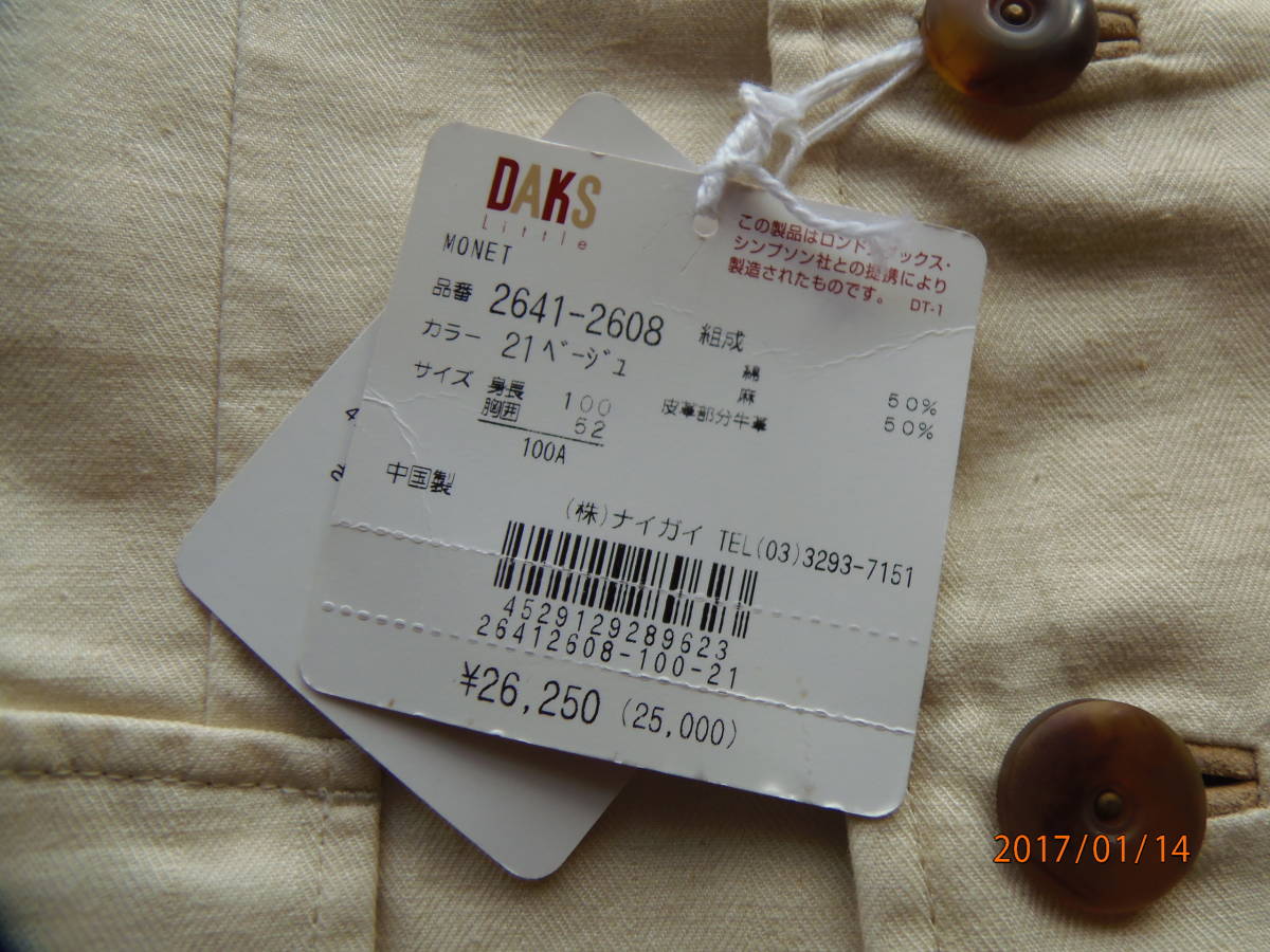 本文中に画像を追加している場合がございます。 入札にあたりまして、必ずパソコンからの画像の確認をお願いいたします。 ご入札頂いた時点で全ての内容にご快諾されたものとし、 記載のある事柄に対するクレームには一切応じません。 出品カテゴリーは同一品が出品されている場所に出品しています。 相違がありました場合ご了承ください。 ○出品内容~ DAKS◆上質◆綿麻 ハーフリネン◆エルボーパッチジャケット◆肘あて @26250 未使用、自宅保管品。 DAKS 大人顔負けの質の良い仕立てです。 メーカー表示 100サイズ~身幅35.5、身丈44cm。 素材 綿50、麻50%、肘部分牛革 ※その他、何度か素手で触っております。暗所保管しておりますが 新品に関しましても、展示品程度のくすみはあるとお考え下さい。 ショウノウやにほい袋の香りが移っていることがあります。 微々たる香り移りにも反応される方、アレルギーの方、 専門店のチェック体制をお望みの方はご入札お控えください。 ※商品状態は画像撮影時のものです。 店頭販売品もしくは新品と比較して・・の状態を記載しています。 アンティーク品にある、傷みはあるが経年のわりには状態が良い=美品 ではありませんのでご安心ください。 できる限り皆様に伝わりやすい表現を心がけております。 ※出品内容は説明文に記載があります。 記載のない物は本来セット品であっても出品に含まれません。 タイトルや説明文にジャンク記載のあるものはジャンク品です。 ジャンク品の定義について議論される方は入札ご遠慮ください。 ※難部分は説明文記載・もしくは画像掲載しています。 素材・状態について正確な表現を心掛けていますが、見落としがある場合があります。 全ての出品物は個人の保管品であり、店頭販売品とは保管環境が異なります。 上記理由により、お安く出品しています。 現状優先NC/NRご理解の上ご入札お願いいたします。 ~下記注意事項・画像参照の上不明な点はご質問下さい~ | ||||