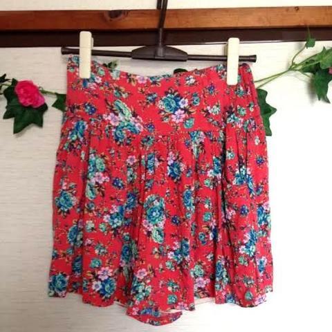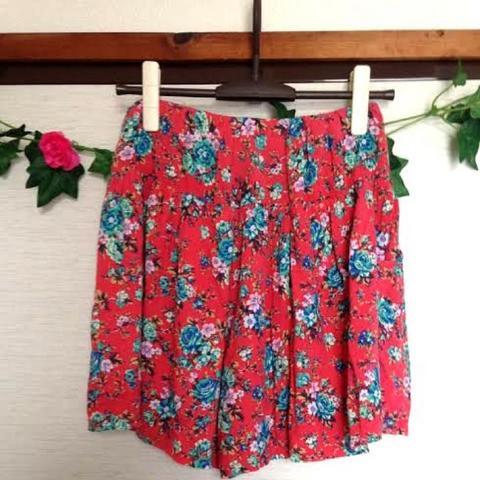 シュカ★レッド 花柄 サラサラフレア キュロット ショートパンツ