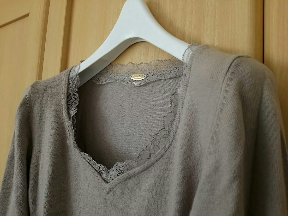 肌触り良い、上質なカシミヤブレンドの薄手ニット。グレーがかった落ち着いたお色です。