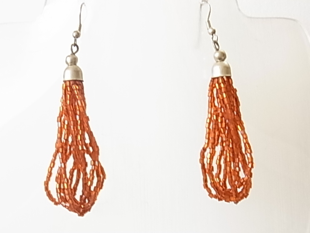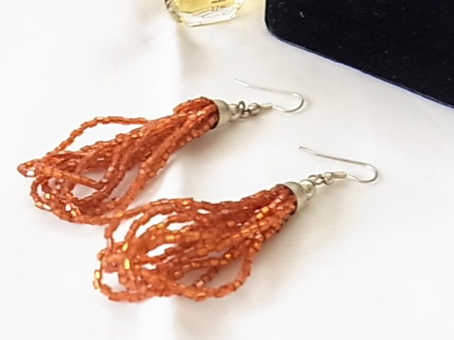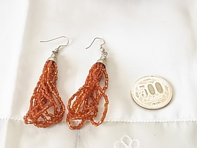 オレンジレッド系のカラー 連なる美しいビーズ使い ダンスにも素敵 耳元で華やかに揺れるデザインのアメリカンピアス★