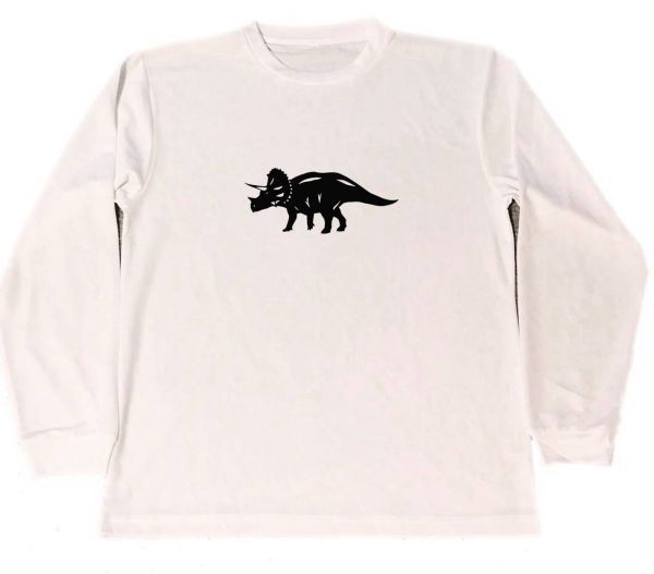 トリケラトプス ドライ Tシャツ 切り絵 恐竜 ダイナソー グッズ2  ロング Tシャツ ロンT 白