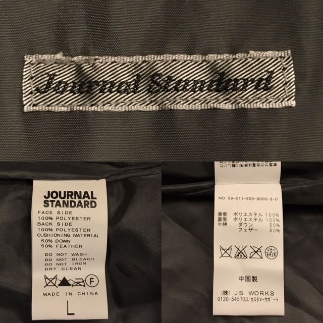 G651 メンズダウンジャケット JOURNAL STANDARD ジャーナルスタンダード 人気 ブルゾン アウター グレー シンプル (80)/ L