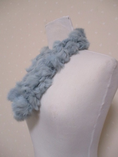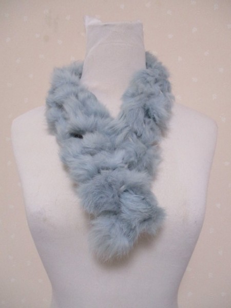 ● ● ラビットファー ■ 3連襟巻 ブルー