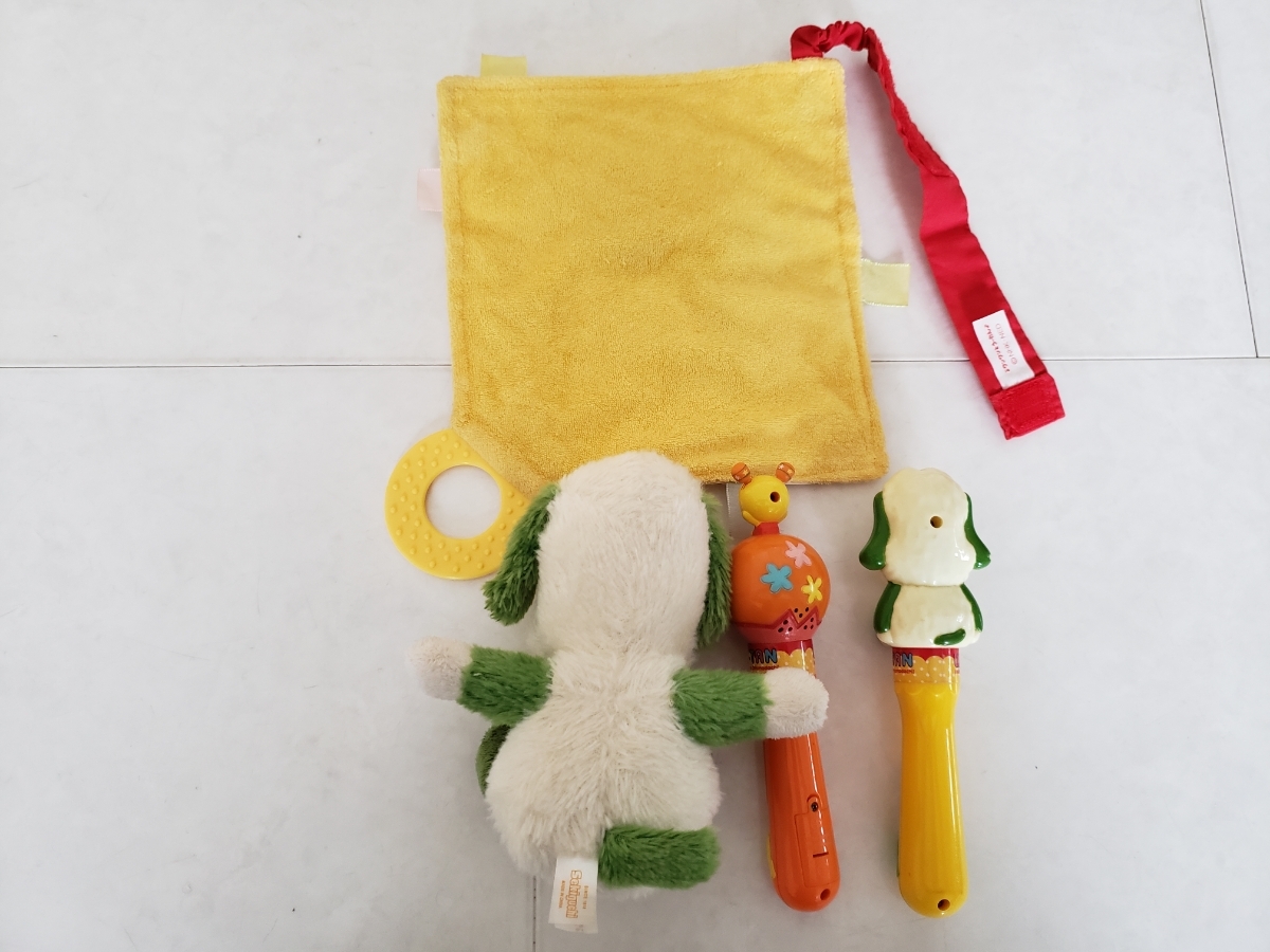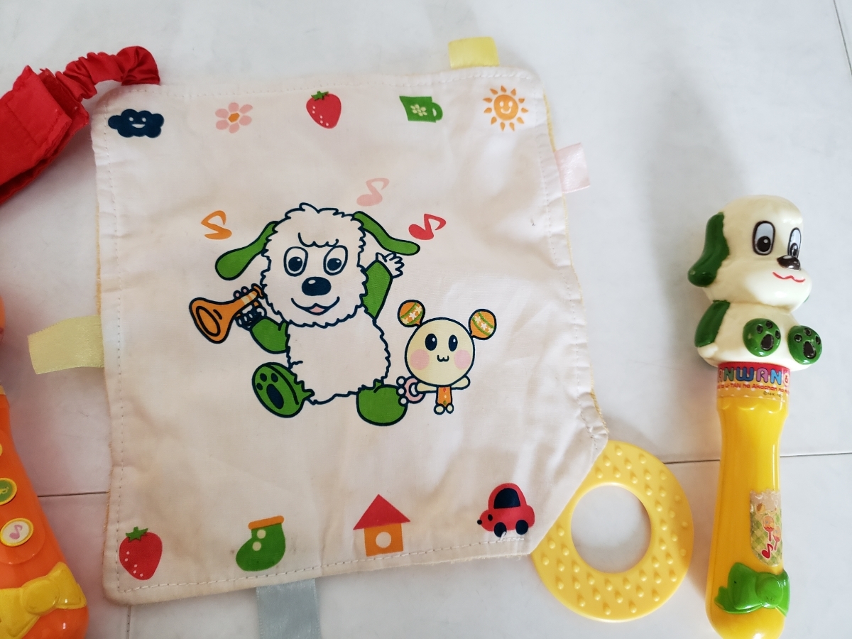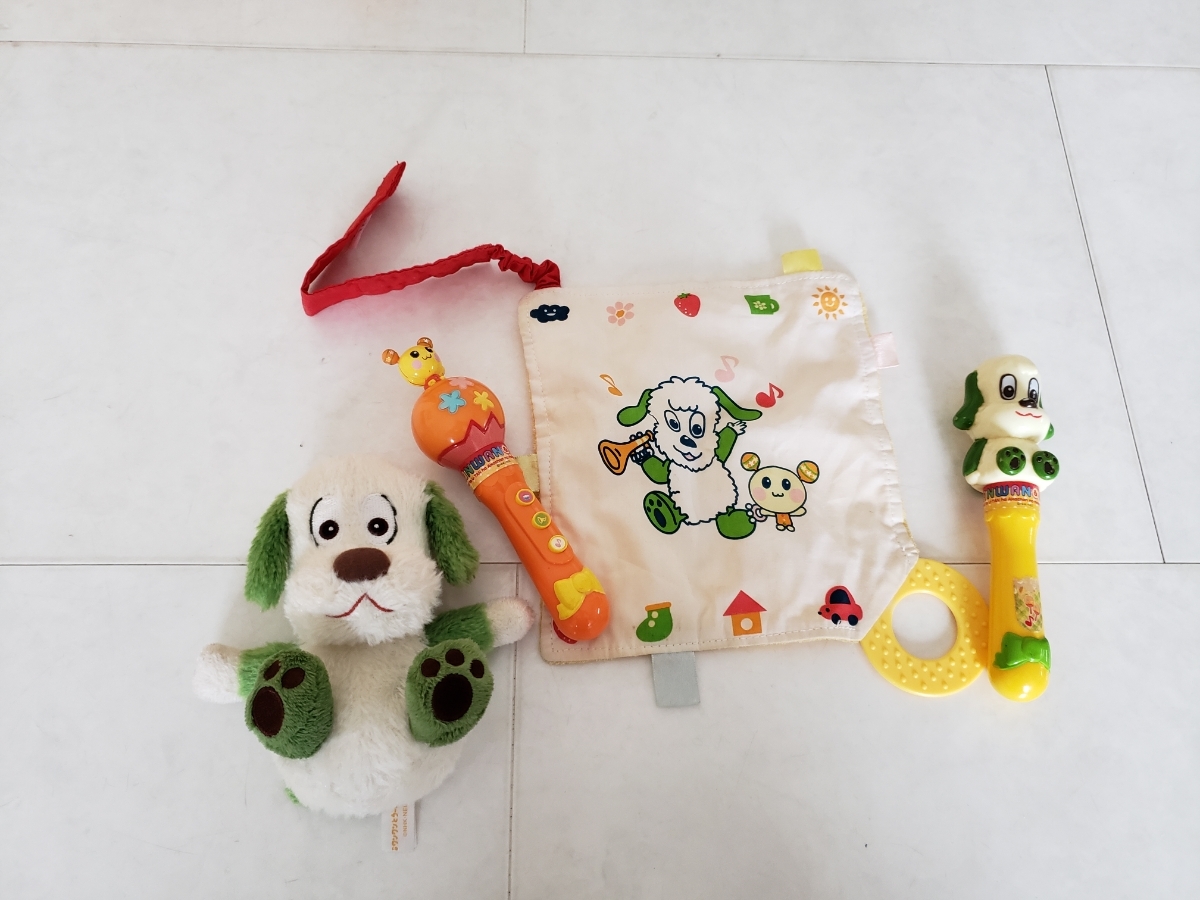 使用状況:いないいないばぁワンワンとうーたんのがらがら、触ると音が鳴る布、ワンワンのぬいぐるみの4点セットです。数回使用のお品ですが美品で赤ちゃんに喜んでいただけるお品です。うーたんのがらがらは、電池を入れるところがあって音が鳴る商品なのですが、新しい電池に入れ替えても音が鳴らないので故障していると思われます。振るとがらがらとしての音はなりますので、がらがらとしては遊んでいただける状態です。