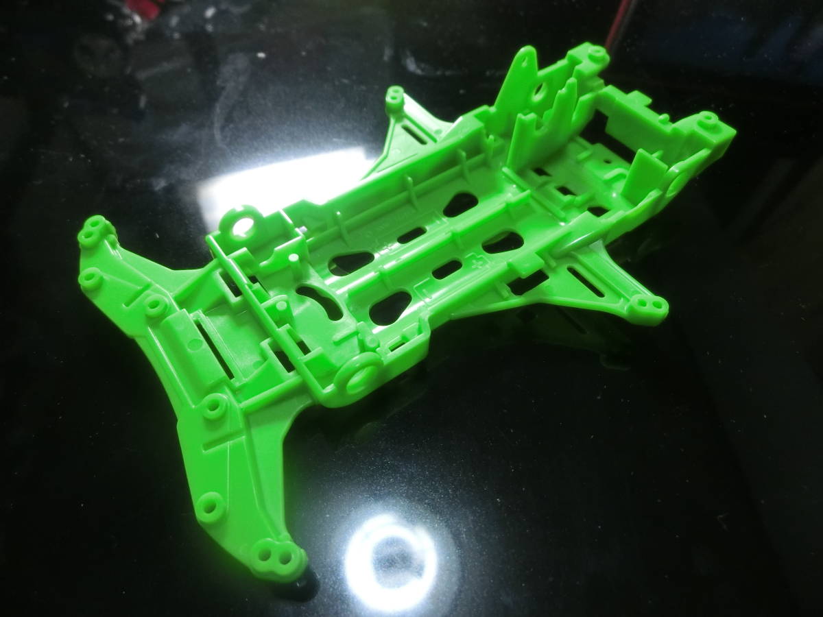 こちらはタミヤ製VS蛍光カラーシャーシ グリーン です。 ミニ四駆のグレードアップパーツです。大変人気の商品です。 欲しい方はこの機会に是非どうぞ。 |