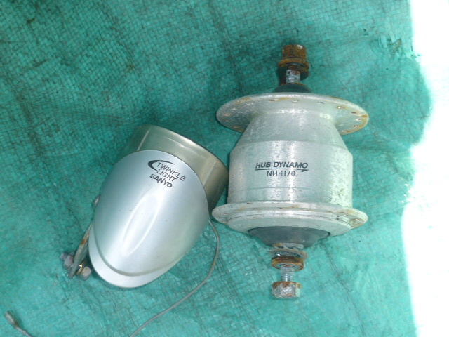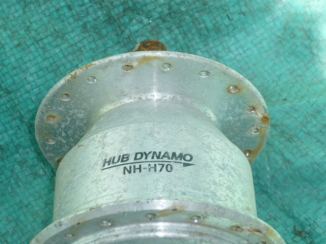 | ★商品説明★ | ★携帯からご覧の方及び発送料を聞く方がいらっしゃいますが送料等発送情報等下にありますので最後までよくお読み下さい。 ★評価の悪い方及び新規の方のご入札は1度質問コーナーよりご連絡下さい。 ご連絡の無い方のご入札はイタズラ・トラブル防止の為此方の判断で削除する場合がありますご了承下さい。 ★宅配便発送分及びゆうパックの場合必ずお読み下さい★ ※集荷・配達不可地域につきましては、予告無く変更となる可能性がございます。 お急ぎの方、遅延にご理解いただけない方は入札ご遠慮ください。ご落札の方には、 状況が判明次第ご連絡をさせていただきます。 大変ご迷惑をお掛けいたしますが、ご了承の程よろしくお願い申し上げます。 ★バイクや自転車・車の部品は消耗品です。完全クレーム対応致しません。保証等お考えの方はお店で整備された物を ご購入下さい。現状販売です。(現状販売の意味の判らない方はご遠慮下さい。) ★商品の詳細は文字では説明出来ない部分が有ります。ごくまれに、説明文に無い等アゲアシ取りをされる方 や神経質な方は、ご遠慮下さい。ご入札は良くお考えの上宜しくお願い致します。 ★動作確認済み。 ★26インチのホイールから取り外しました。 ★スポークの長さ:26インチの場合約27cmのスポークが要ります。 ★スポークの長さ:27インチの場合約29cmのスポークが要ります。 ★スポークの長さ:28インチの場合約29cmのスポークが要ります。 ★ライト:サンヨー TWINKLE LIGHT。焼け・キズ・シミ・メッキ剥がれ有り。 ★ダイナモ:HUB DYNAMO NH-H70。スポークを入れる所サビ有り。キズ・サビ有り。 ★ネジ類:サビ大ですのでおまけとお考え下さい。要らない方は落札の際お申し付け下さい、外してお送り致します。 ★スポークを入れる駒数36です。 ★このままでは使用出来ません。取り付けは専用のスポークが必要です。 ご自身の駄目になったダイナモのホイールがあればそのスポークで張替は可能です。 ★スポークを張り替えて実際に自転車に取り付けるときの注意点を下記に記します。↓ ★取り付けのコツは締めすぎず緩すぎず車輪が違和感無く回る様に取り付ければ大丈夫です。 ゴリゴリ音があれば締め過ぎです、その時はライト点灯しません。 ★前輪を締めるコツですがナットに負荷がかかりきつくなった時1回又は2回程クッかクックッとご自身が負荷が かかる状態がだいたい10kg前後ぐらいの最良な締め付け具合です。 これを覚えると家電・タイヤ交換等回して締める物は大抵大丈夫です。(全般に保証している物では有りません) ★自転車・車バイクの様に不安が有る物は外れたら怖いと過剰に力が入り結構きつく締める場合が 心の中で知らず知らず生まれます。お気を付け下さい。 ★一番判る判断テストは上下逆さま(反対にして)で車輪を指で軽く回します。 その時ゴリゴリに締めますとカックンカックン・1マスメ~2マスメ間隔等に カカクンカカクンと車輪の負荷がかかり上手く回らない車輪が止まる状態が締めすぎです。 早く・強く回すと判りづらいです。ユックリとお願いします。 ★正常は指で軽く回しますと普通に違和感無くスーット車輪が回ります。 その際明るい内はライトのセンサー部分の本体後に携帯のカメラ部分のような窓が有りますのでここを押さえ光を センサーに関知させないで行うと点きます。 ★結構敏感で精密な部分ですのでビニールテープの黒かガムテープ・黒の布等で塞がないと関知して明るい内は 点灯しません。夜であればそのままで点灯します。 ★大事な事ですがホイール(ダイナモ)とライトの線がちゃんと繋がっていなければ付きませんお気お付け下さい。 ★LED以外稀にライトの中にある銅版にライトが接触してなければ球を交換しても付きませんので銅版を軽く曲げて 球に接触するようにして下さい。球は消耗品ですので切れている時は交換して下さい。対応は致しません。 ★テストはスチールのフロントフォークでしておりますアルミ等特殊な物は点かない可能性が有りますので ネット・自転車屋さん・判る方に聞いた上でご入札お願い致します。その際安易に落札され点灯しない等 一切返品・返金等対応致しませんのでご了承頂いた方のみ宜しくお願い致します。 ★全体に年相応のサビ・キズ有ります。 ★発送は記載されているのみです。他の発送は不可になります。梱包代を含んだ金額になりますので、 ご理解頂いた方のみご入札下さい。実際の重量とは異なります。 ★割れ欠け見当たりませんが細かい部分は未チェックですので大事な部分はご質問で確認して下さい。 ★質問で確認のない欠け割れ部分は対処致しませんのでお気を付け下さい。 ★全体にキズ・シミ・サビ等有ります。部品取り・塗装等してお使い下さい。 ★評価の悪い方及び新規の方のご入札は1度質問コーナーよりご連絡下さい。 ご連絡の無い方のご入札はイタズラ・トラブル防止の為此方の判断で削除する場合があ