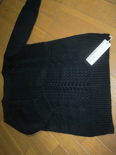 | 商品について | ・即決 新品タグ付き 黒の7分袖ニット(M) サイズM 着丈約65センチ、身幅約46センチ、肩幅約39センチ |
