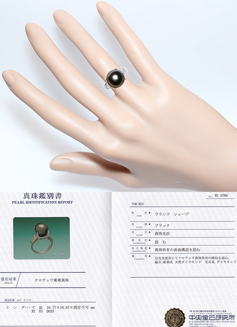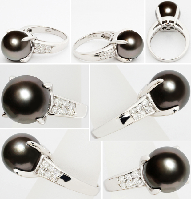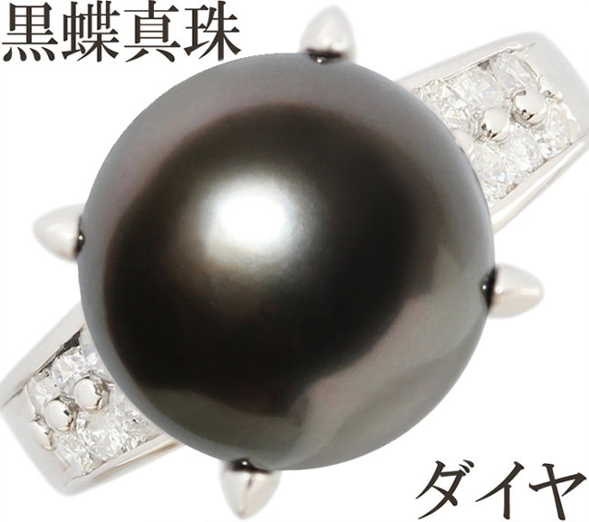 | 上質 綺麗☆黒蝶真珠 パール 10.7ミリ ダイヤ 0.35ct リング 指輪 Pt900 プラチナ 6号♪鑑別付・送料込 | ||
