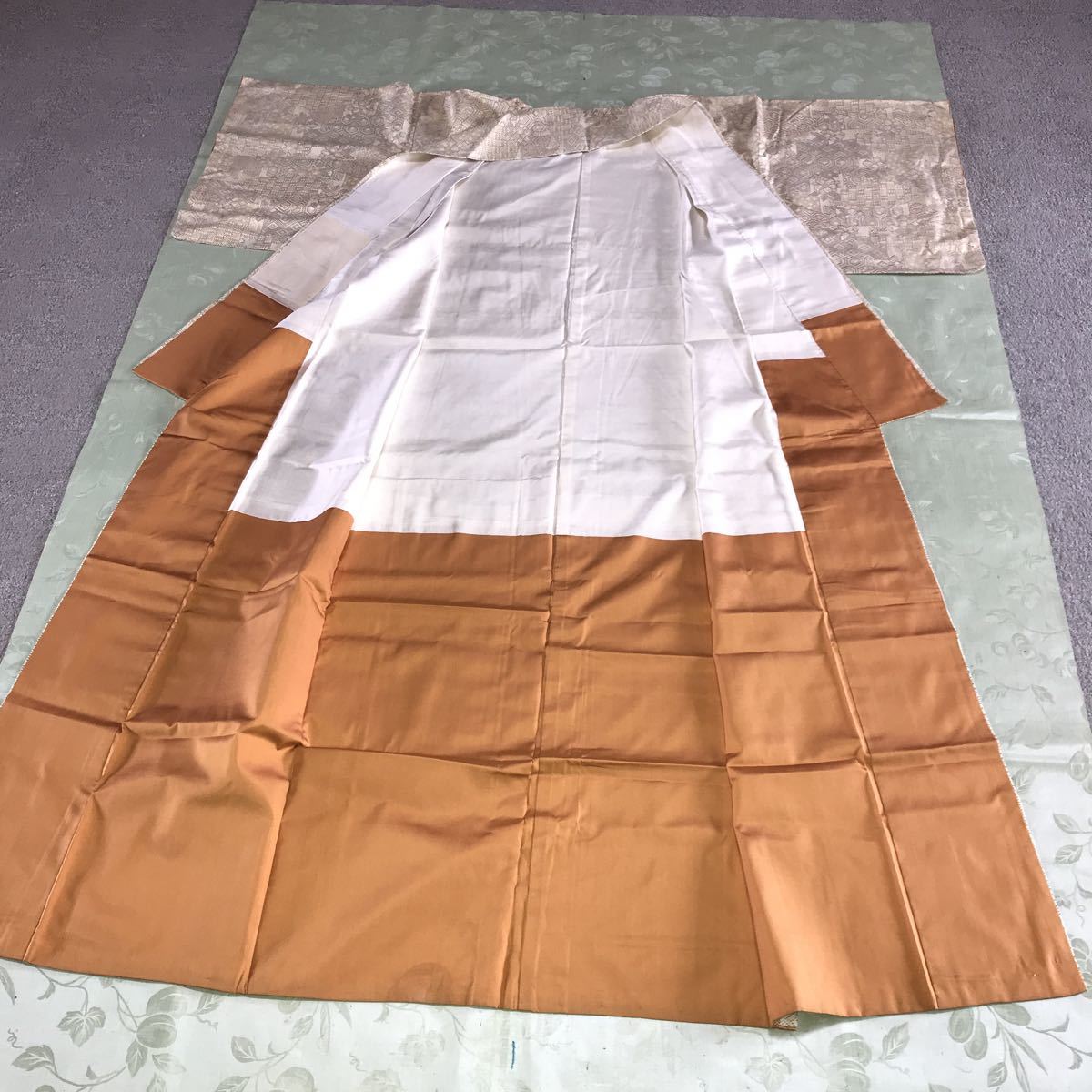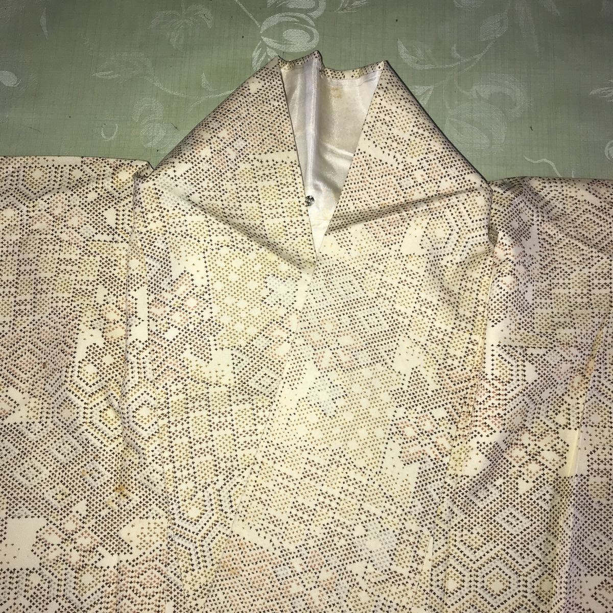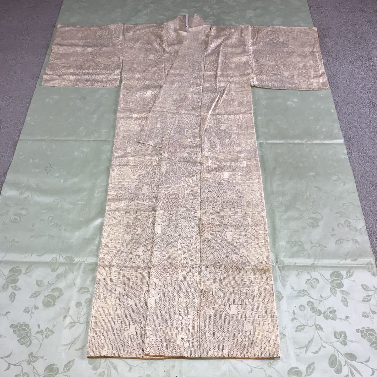 ■女性着物 広衿 ポリエステル?絹のよう?単衣 クリーム色地うす茶 うす黄■