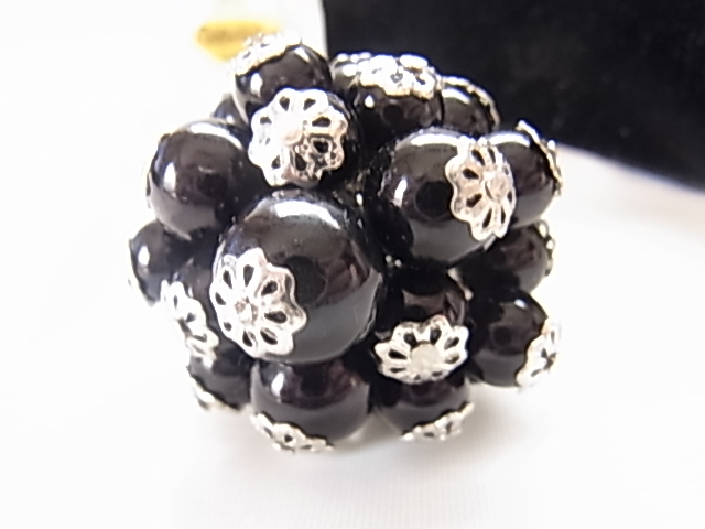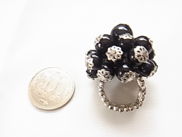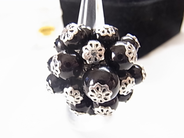 インパクト 黒のオリエンタル調のボールストーンがゴージャス感を与えるデザイン フリーサイズのリング 指輪