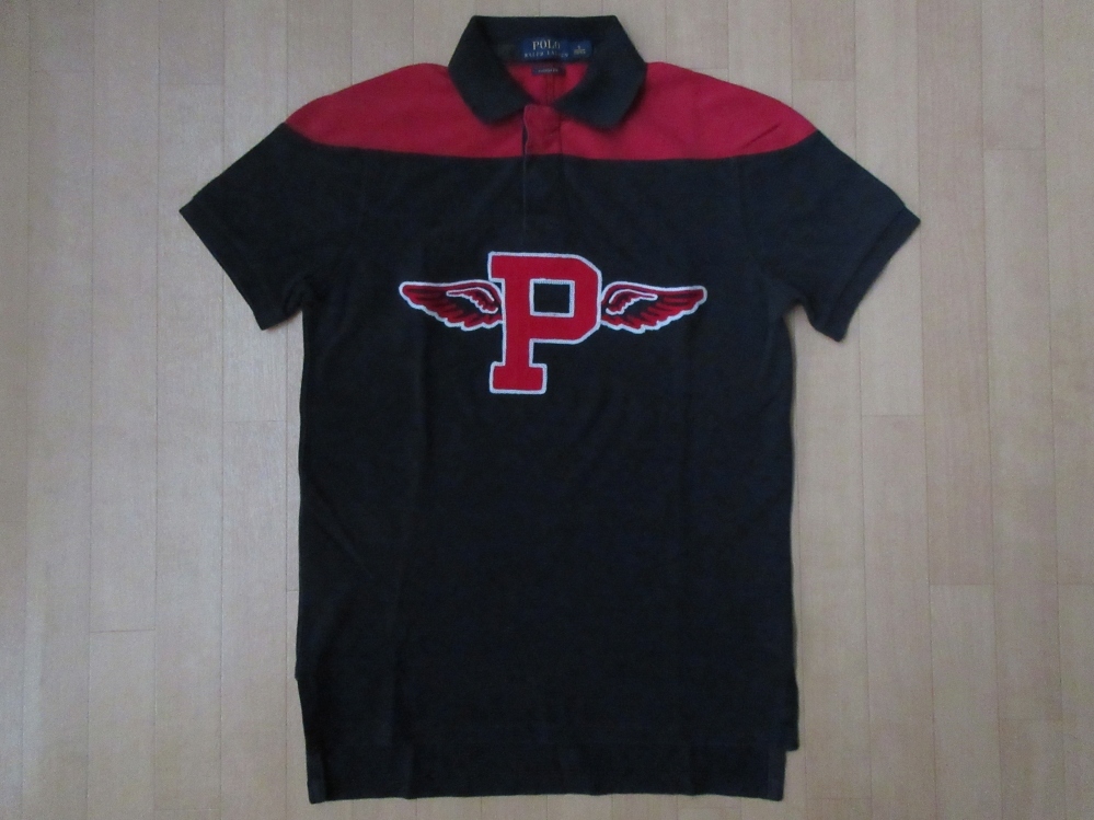 POLO RALPH LAUREN Pウイング チェーンステッチ 刺繍 半袖 ポロシャツ S 黒 ブラック レッド ポロ ラルフローレンWing SPORT スポーツ foot