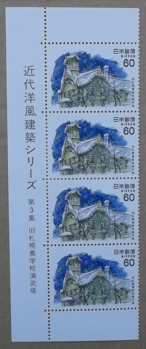 S338【表題付き単片切手】◎近代洋風建築シリーズ 第3集 旧札幌農学校演武場◎
