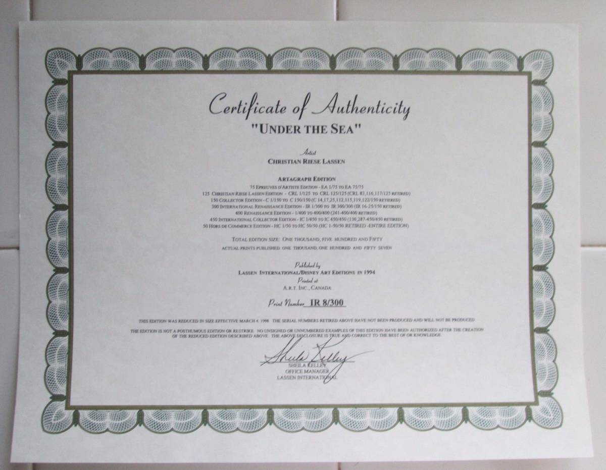 Disney Fine Art ディズニーファインアート リトルマーメイド アリエル クリスチャン・ラッセン Christian Lassen Under the sea