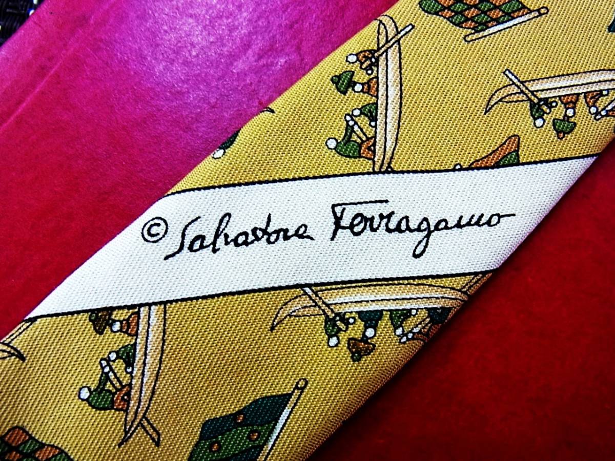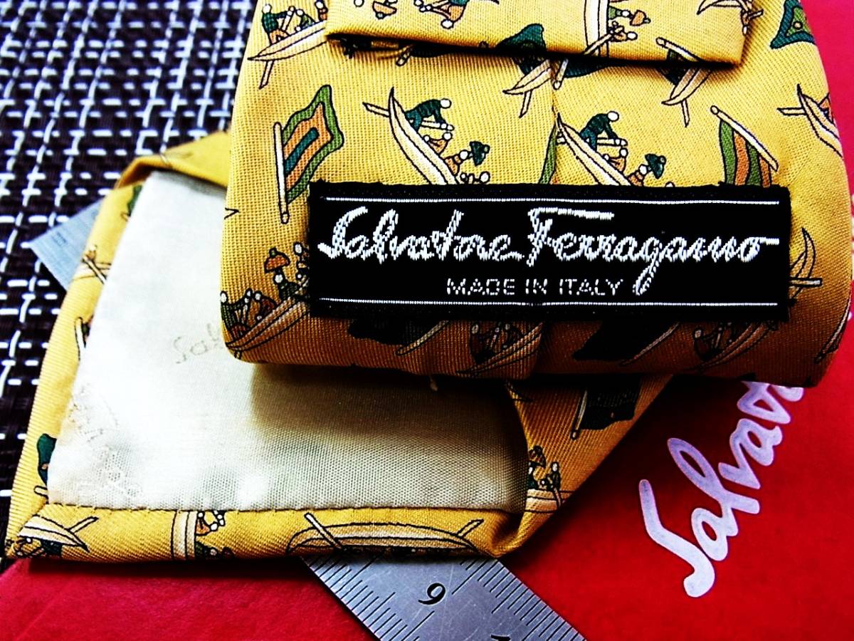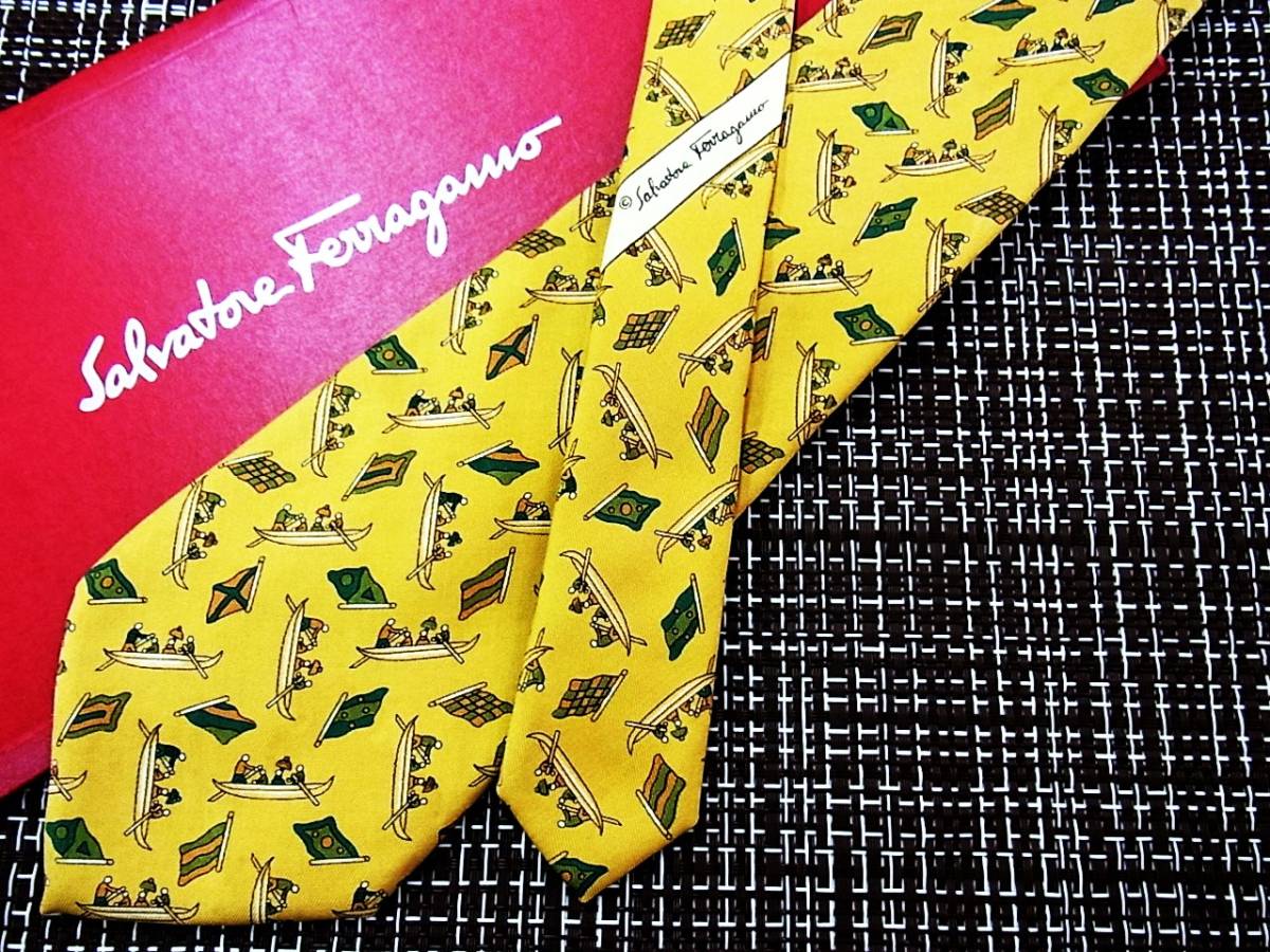 ・ω・ ★SALE★2677■フェラガモ【船・旗】ネクタイ
