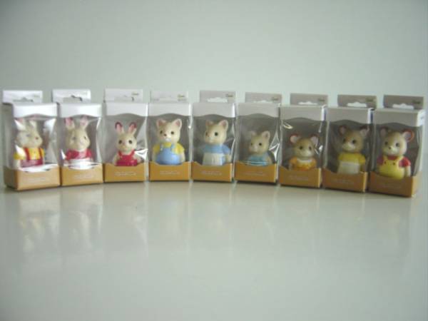 1.ショコラウサギのお父さん 2.ショコラウサギのお母さん 3.ショコラウサギの女の子 4.シルクネコのお父さん 5.シルクネコのお母さん 6.シルクネコの女の子 7.どんぐりネズミのお父さん 8.どんぐりネズミのお母さん 9.どんぐりネズミの女の子 ◇ミニチュアフィギュア第4弾! 本物のパッケージそのまま!一緒に遊んでね! |