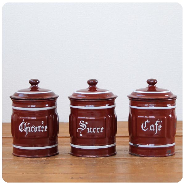 フランスから古いホーローキャニス ター3個セットが届きました!