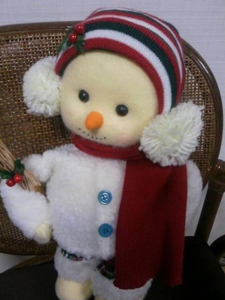 背中のゼンマイネジを回すとクリスマスソングが流れ首が動く可愛い仕掛け人形です。