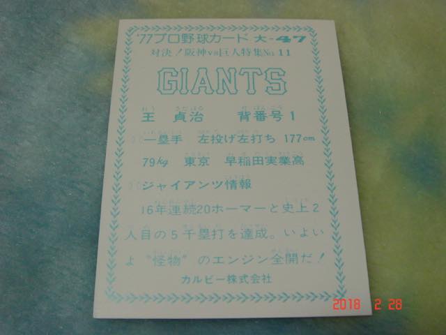 [大阪限定版] カルビー '77年 プロ野球カード NO.47 (王/巨人)