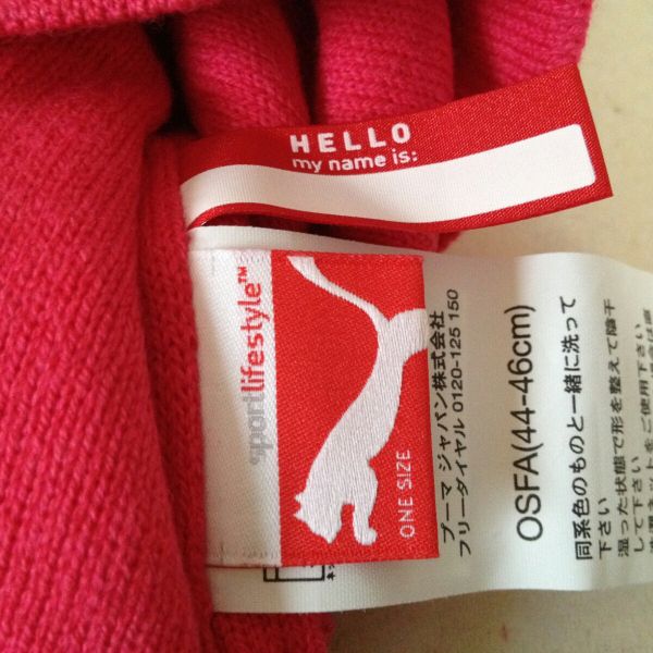 洗濯表記・・・洗濯可、漂白剤不可、アイロン不可、ドライクリーニング不可
