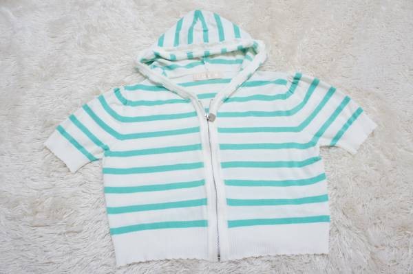◆レッセパッセ◆ボーダーニット*ショート丈半袖パーカー M