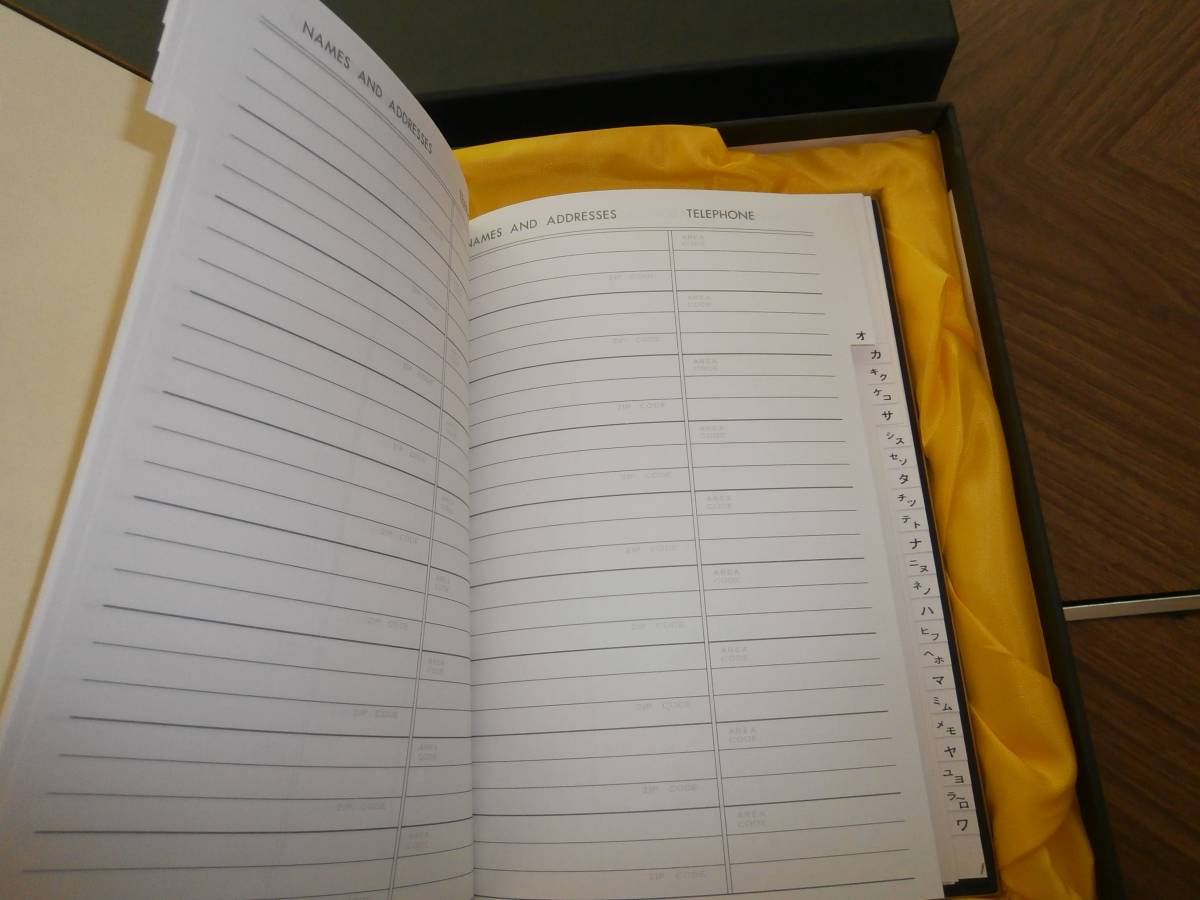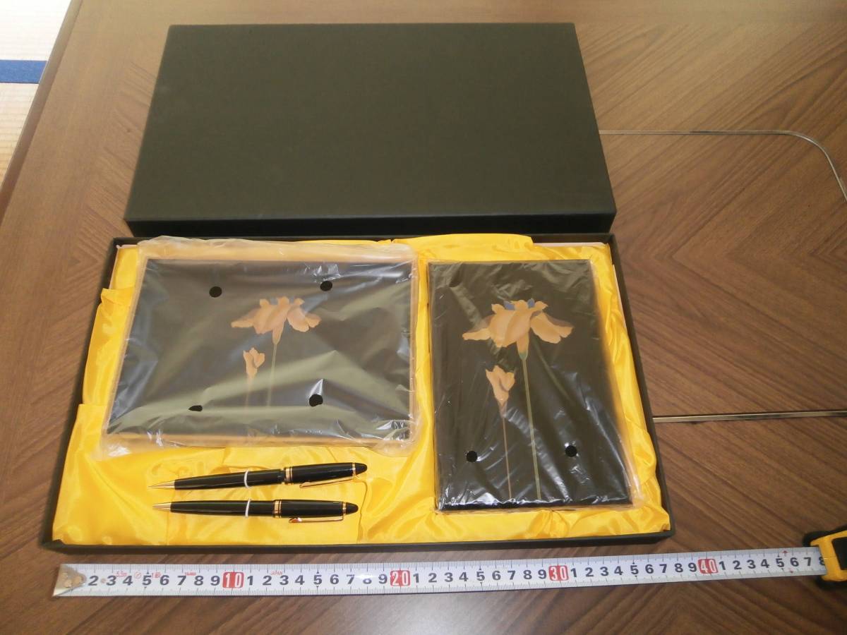 和風の高級感ある卓上トレー、電話帳、ペン、シャープペンのセット.です。