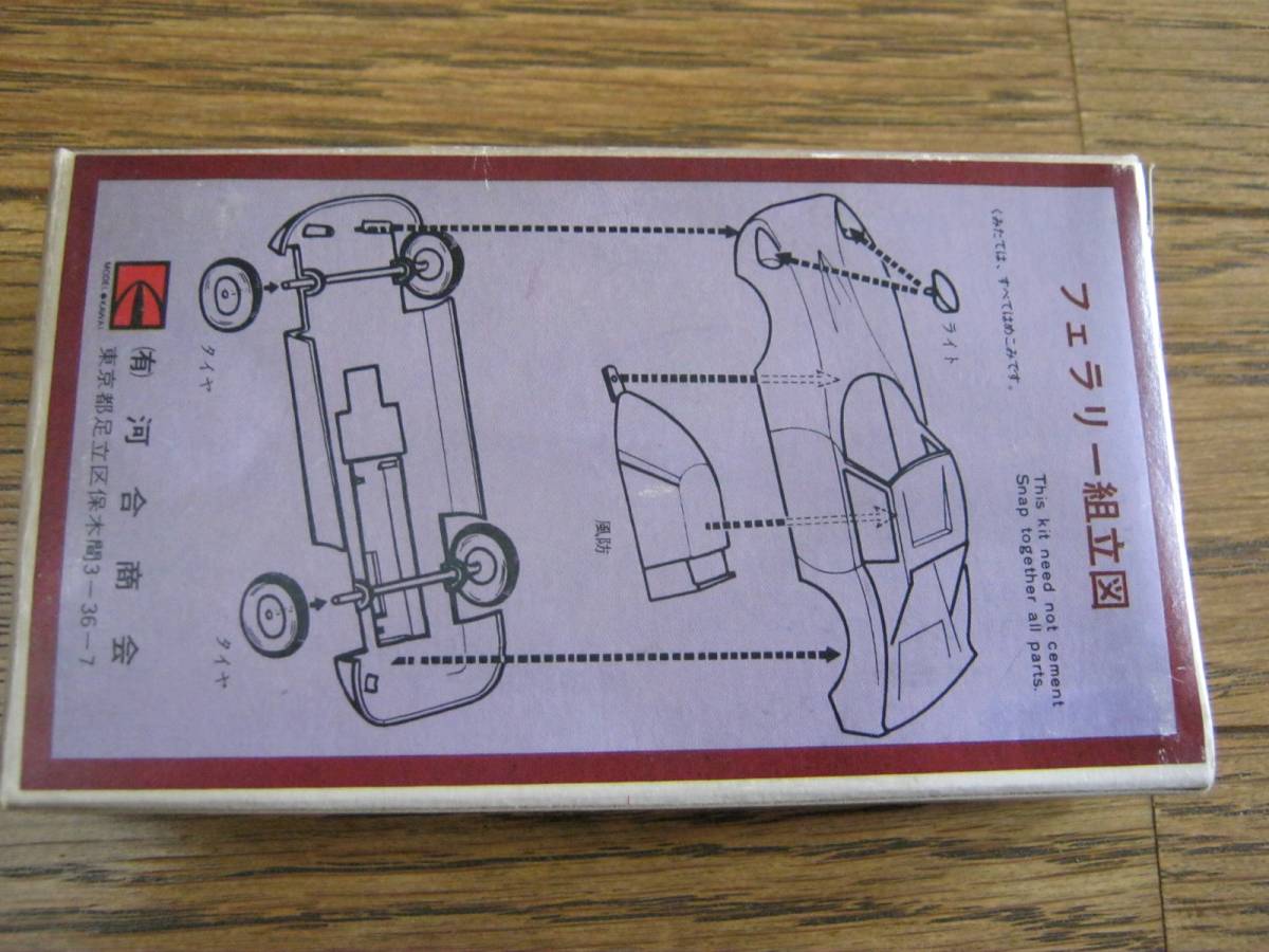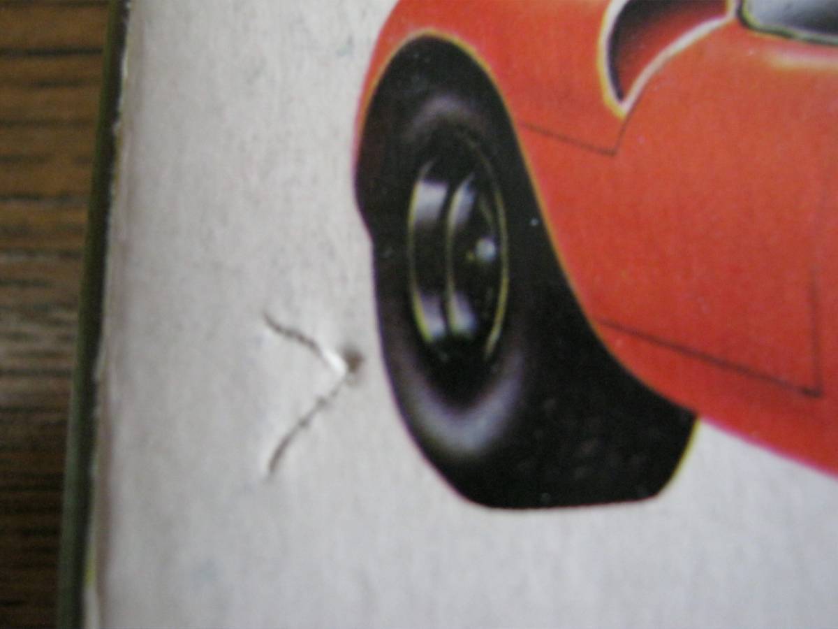 未組立です。部品の破損、欠品はありません。箱の中の部品の入った袋は未開封です。動力はありません。手で押すコロ車です。箱の裏面に組立図が印刷されています。箱の印字がフェラーリではなくフェラリーになっています。箱にシミ、汚れ、キズ、スレ、ツブレ、サケがあります。サケは箱の表面の向かって左側の車の絵の後輪付近に逆くの字形に約1㎝位サケがあります。箱のサイズは約7.5㎝×13㎝×3㎝位です。以上判るだけ書きましたが写真、質問等で判断お願い致します。落札後はノークレーム・ノーリターンでお願い致します。